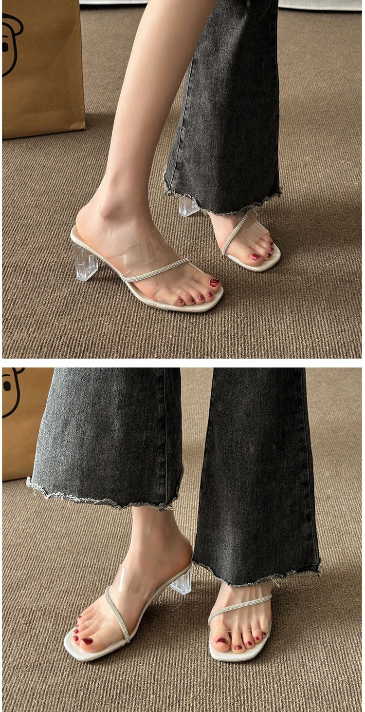 高跟鞋女外穿2025年夏季新款时尚圆头粗跟网红水晶拖鞋女式凉鞋女