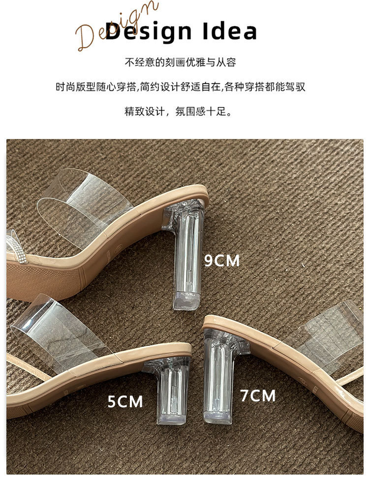 一新款水晶2025跟拖鞋女夏女士凉拖鞋字型透明大码外贸粗跟高跟鞋