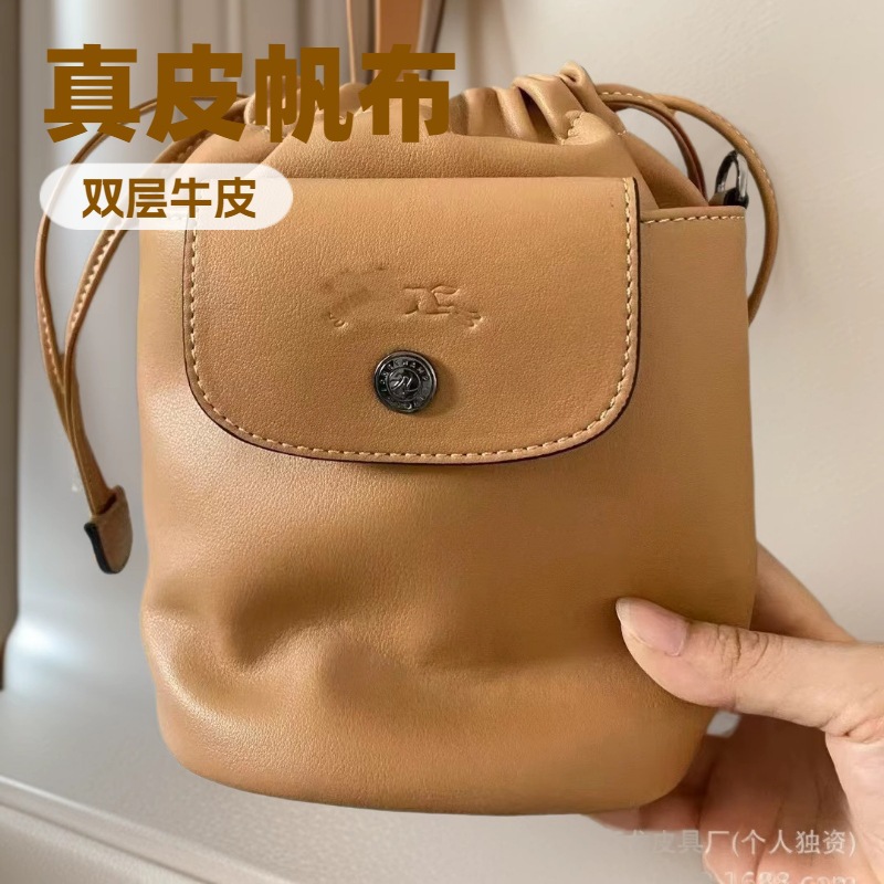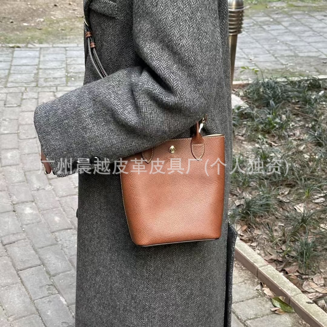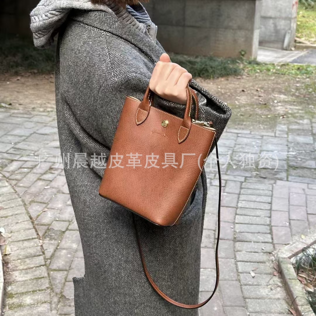 フランス Longxiang 2025 新しいトップ牛革スモールバケツ王曼宇と同じスタイルの小さな福袋バッグシングルショルダークロスボディバッグ