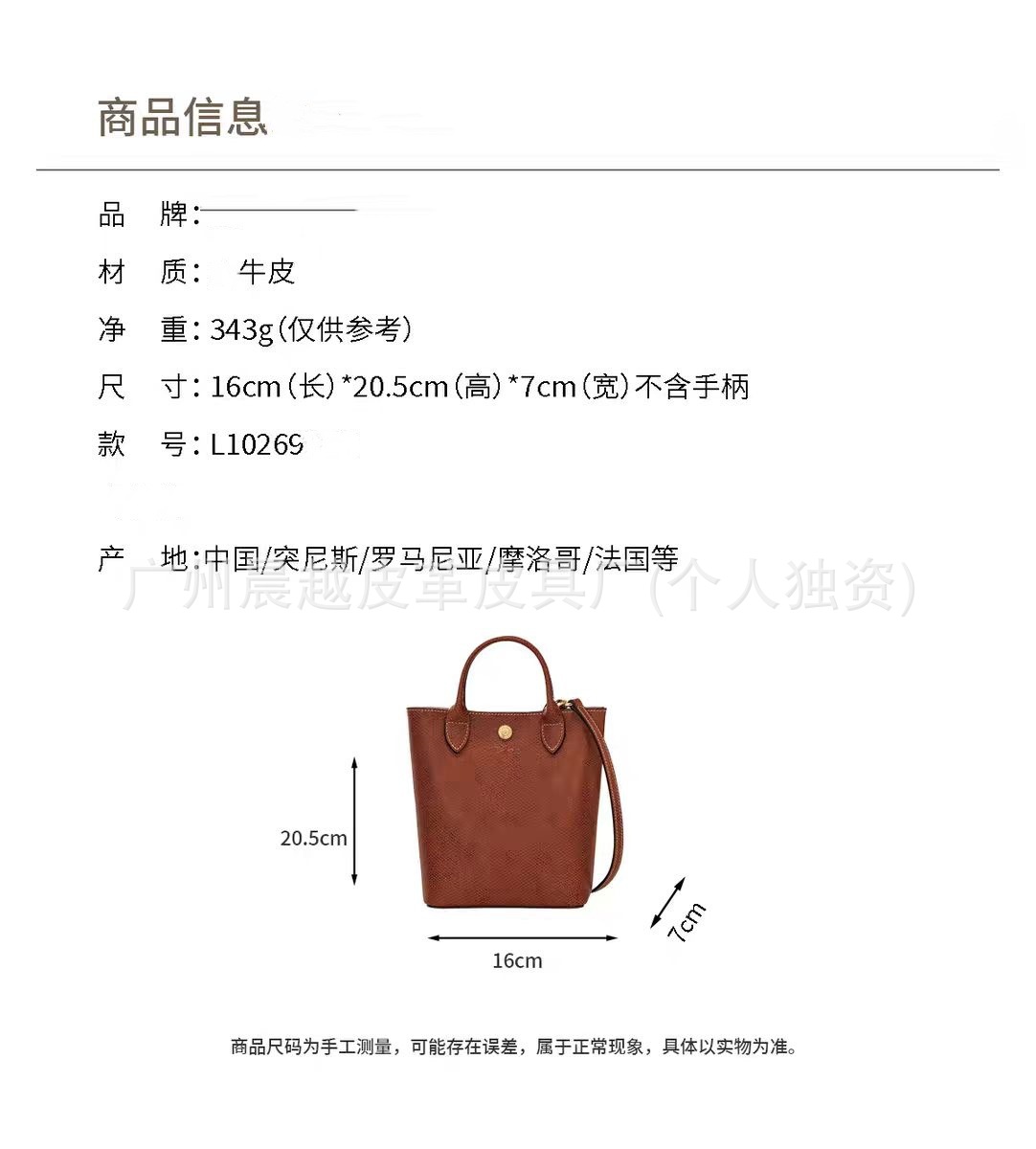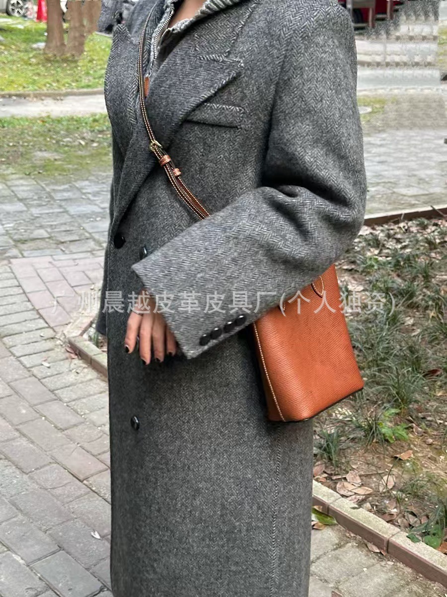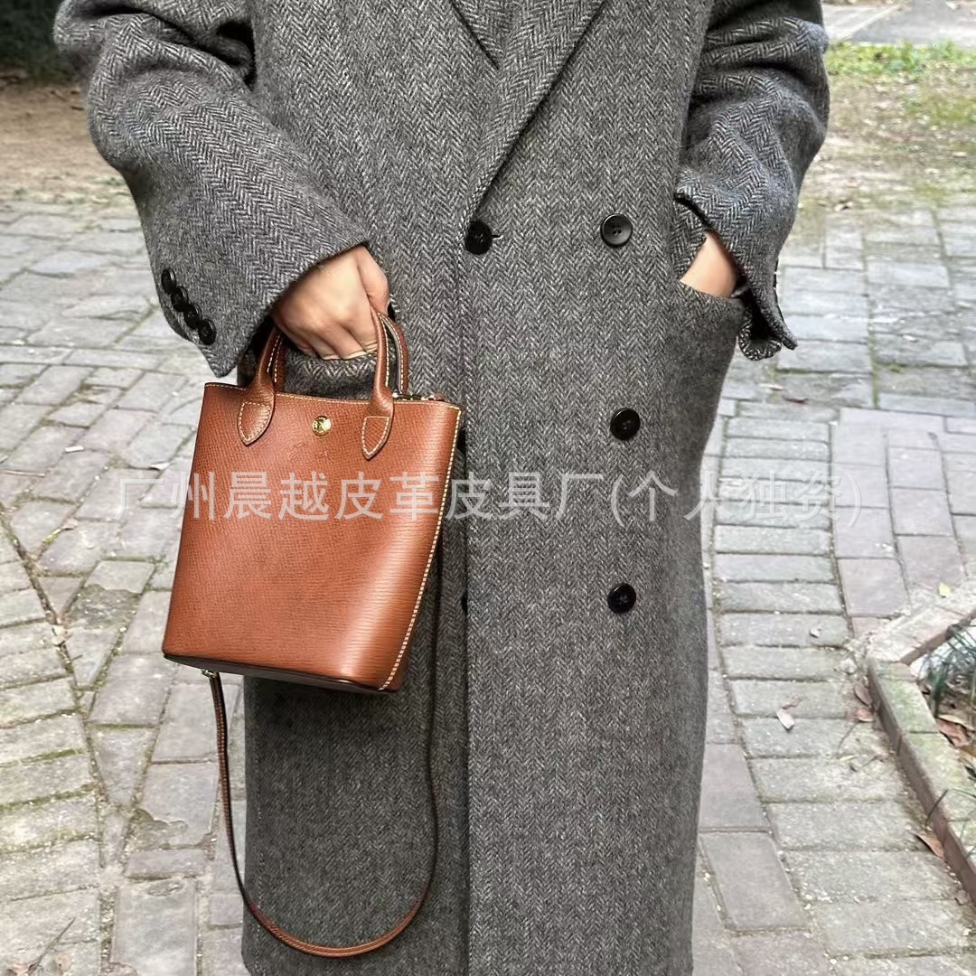 フランス Longxiang 2025 新しいトップ牛革スモールバケツ王曼宇と同じスタイルの小さな福袋バッグシングルショルダークロスボディバッグ