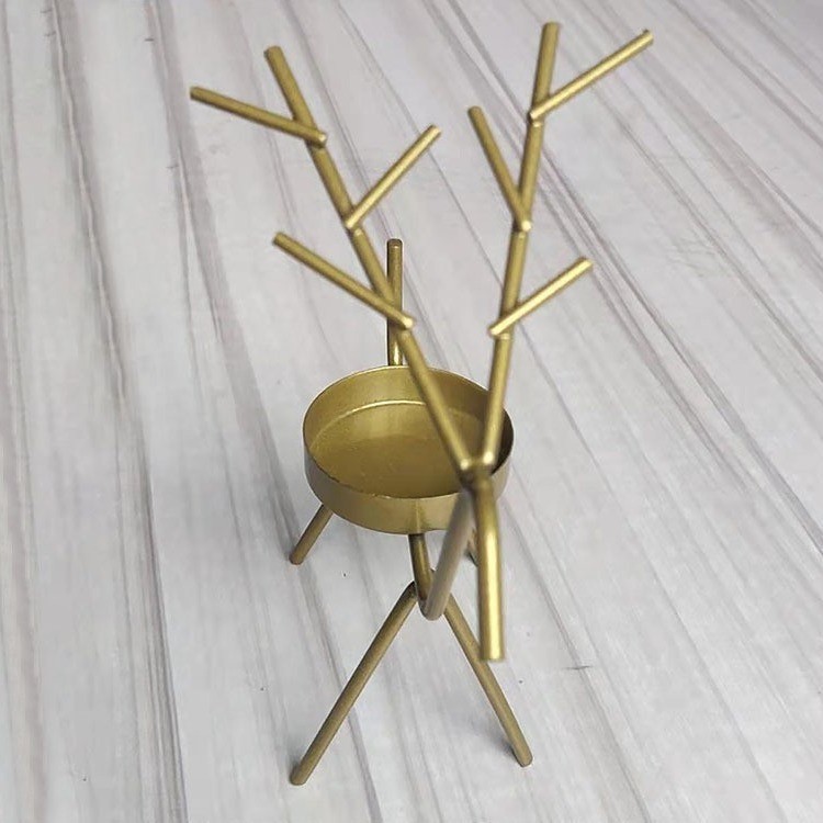 北欧風高級感のある祝日の装飾品ヘラジカの鹿の形の鉄芸の燭台はレストランのデスクトップの工芸品を並べます。