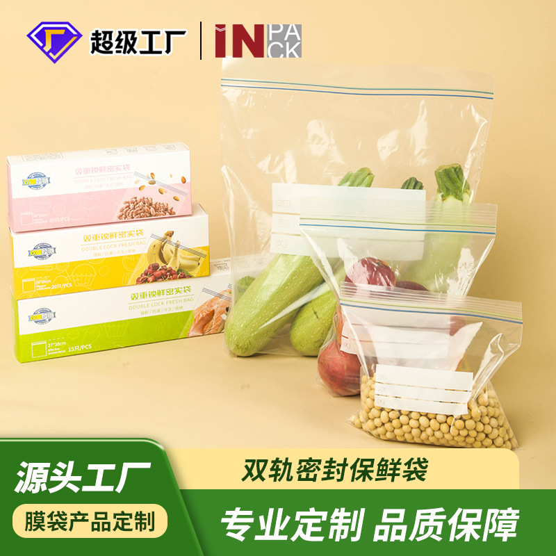 在庫ありの二重構造密封袋、野菜や果物の分詰め保存袋、食品保存袋、冷蔵庫冷凍用二重構造密袋