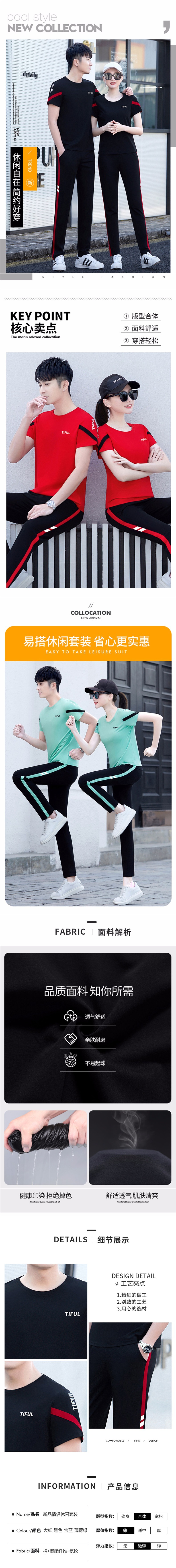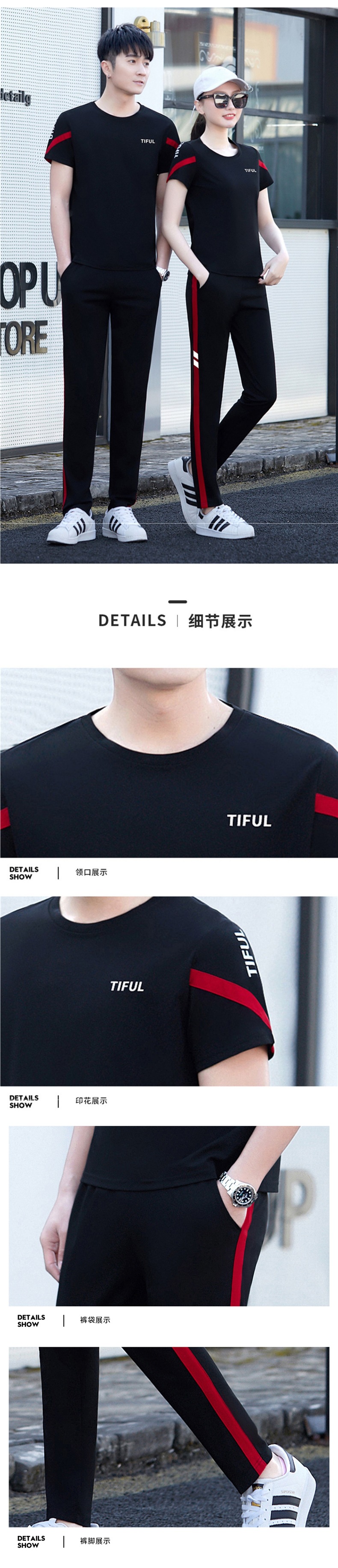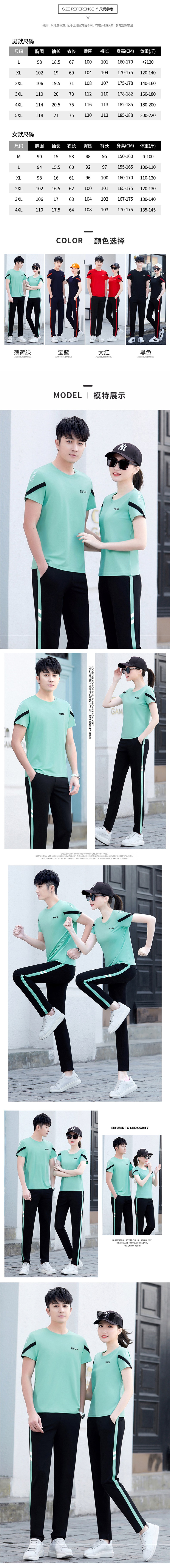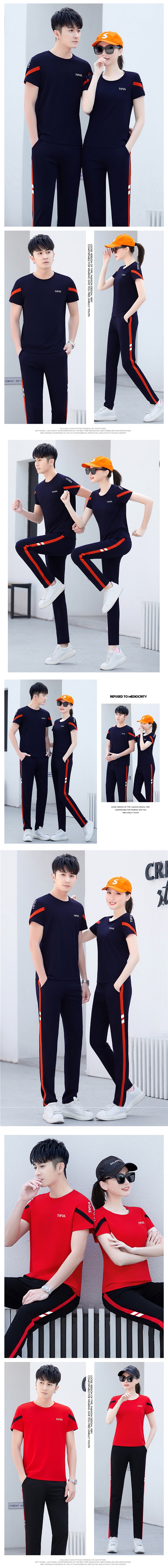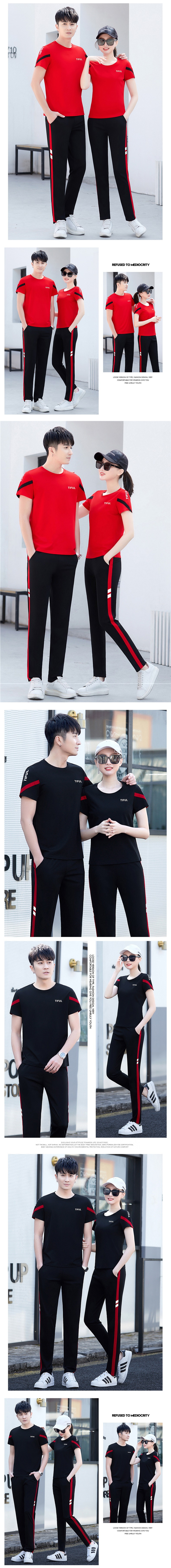 カップル着用夏半袖Tシャツスポーツウェアカジュアルスーツ男女兼用トレンドブランド大きいサイズランニングトップツーピースセット