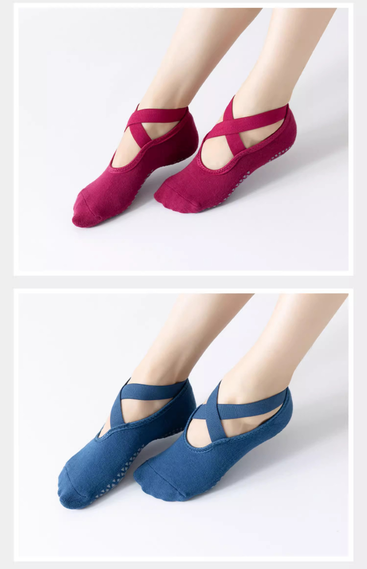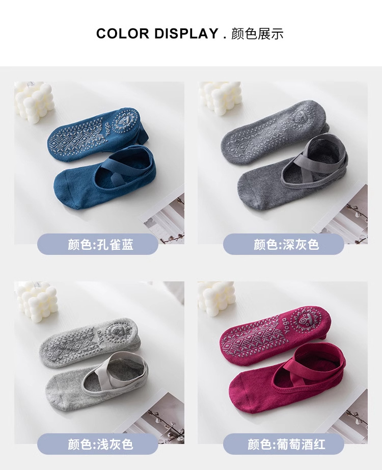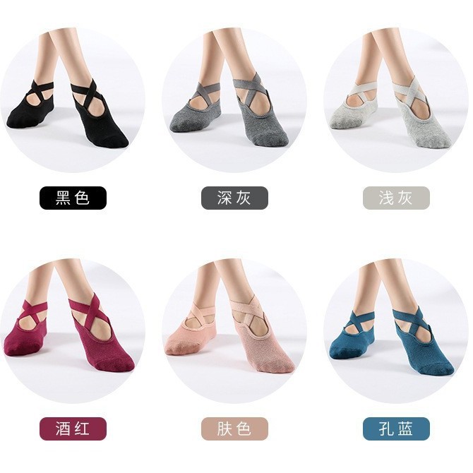 プロ仕様の滑り止め付きヨガソックス、クロスストラップ、薄型、背中開き、ピラティスソックス、フロアソックス、夏用薄型、卸売