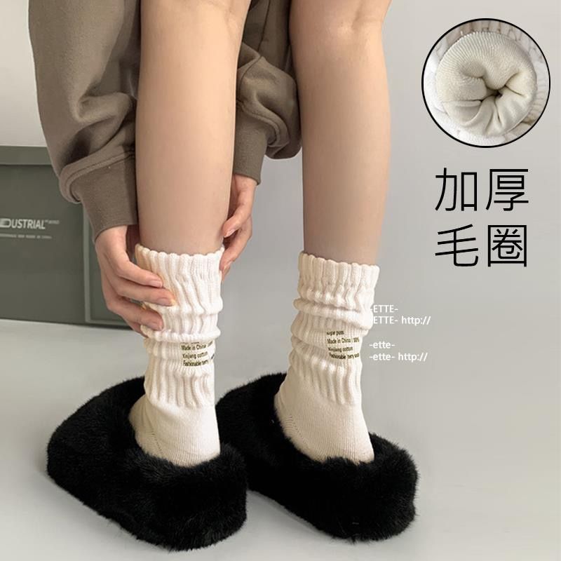 粗針プリントの和風ワークウェア風タオル底スポーツソックス、白黒無地、アメリカンスタイルの重ね履き感、シティボーイソックス