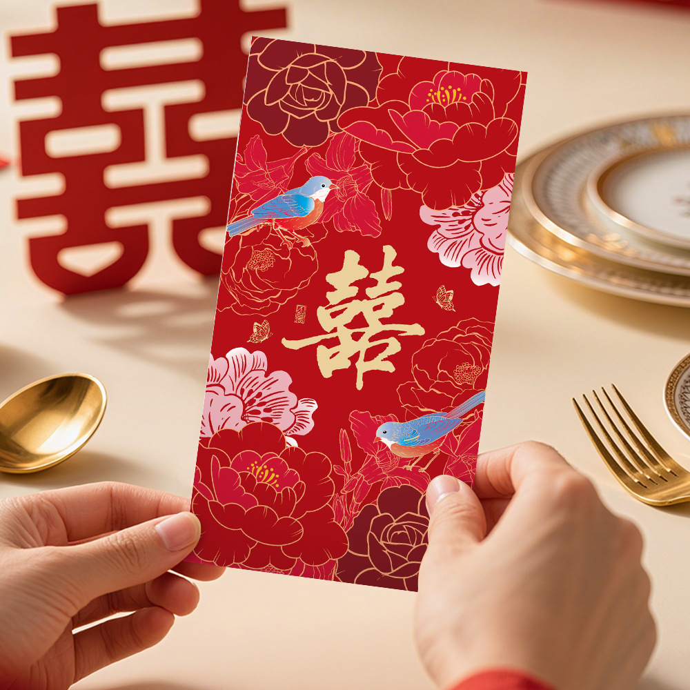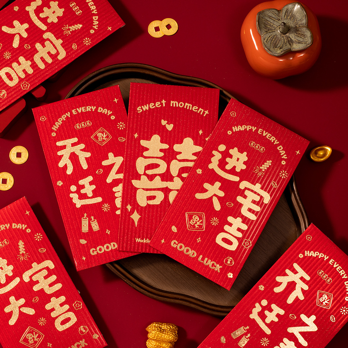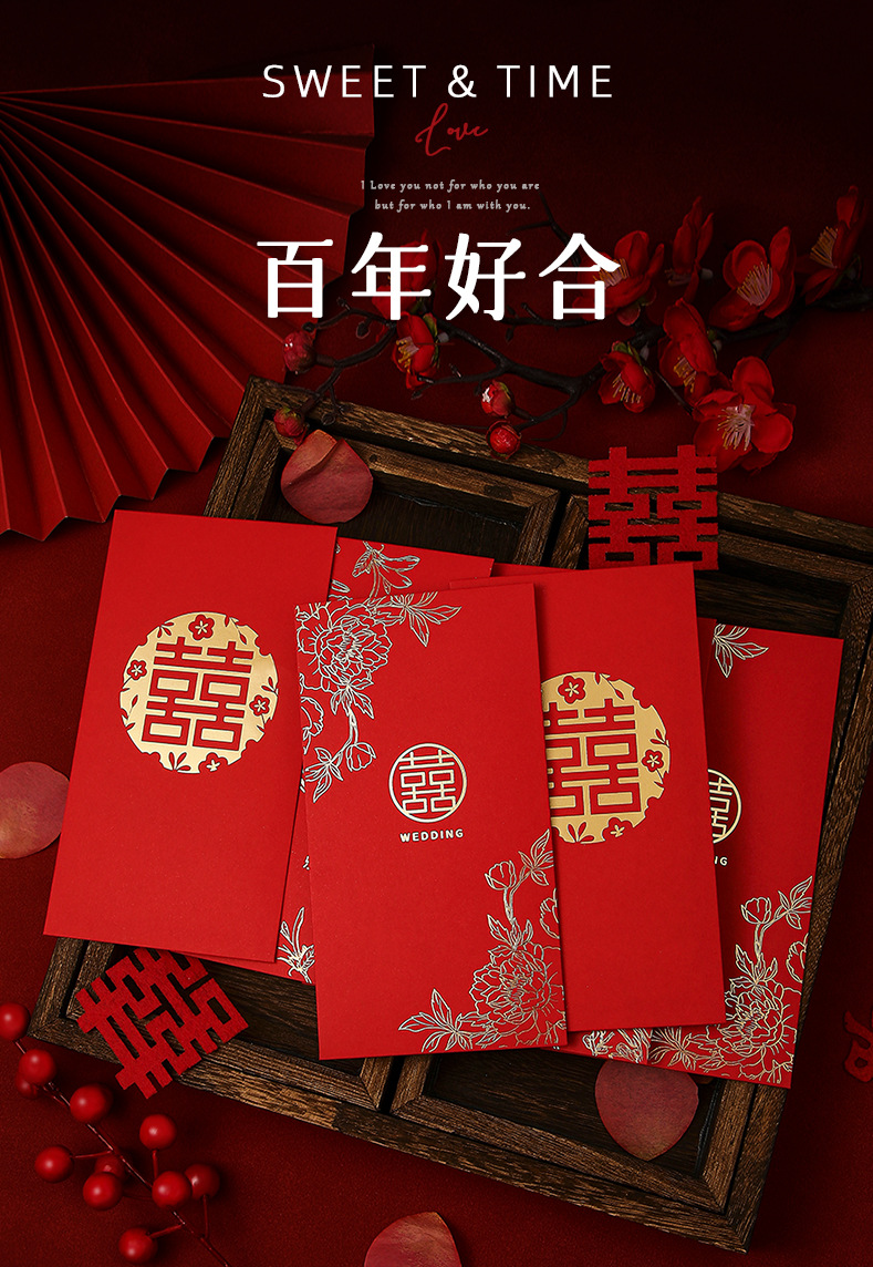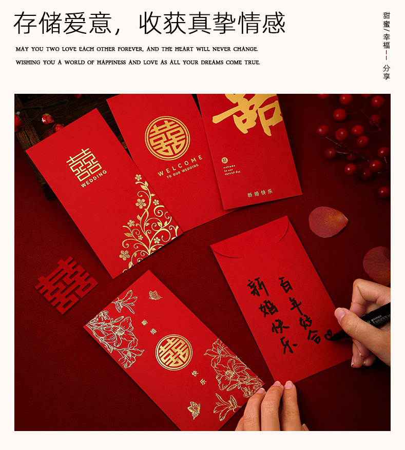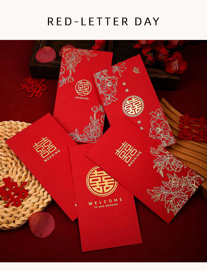ハッピーウェディング_金箔赤い封筒,咲く花_金箔赤い封筒,古典的な元渓_金箔押し赤い封筒,幸せに幸せ_金箔赤い封筒,喜びがいっぱい_金箔赤い封筒,百年の調和_金箔赤い封筒,古典的なハッピーワード_金箔押し赤い封筒