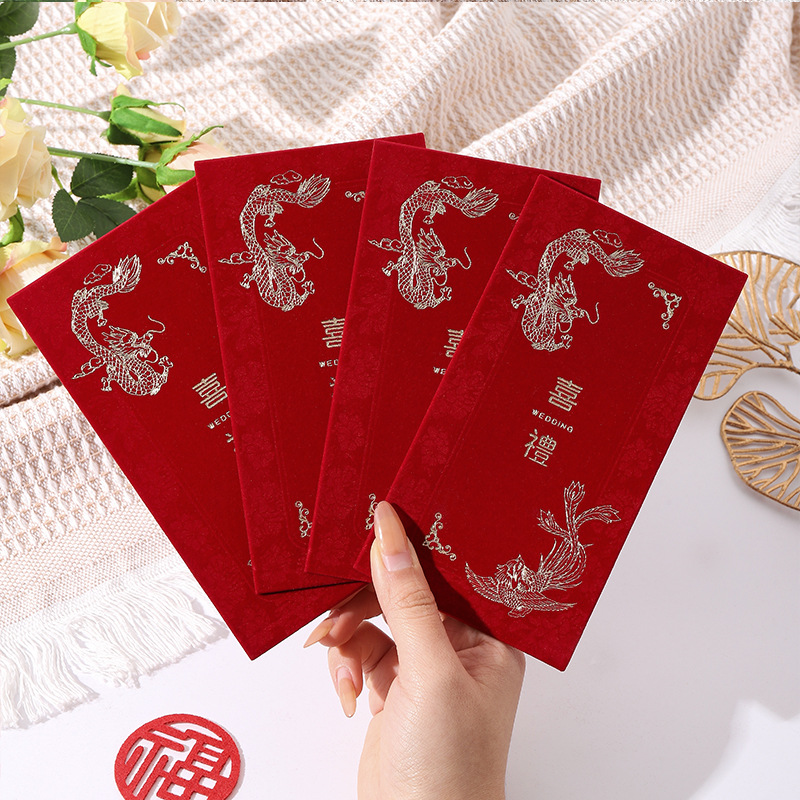 2025新型植毛喜字千元結婚随礼専用紅包利は婚約袋の高級中国式紅包である
