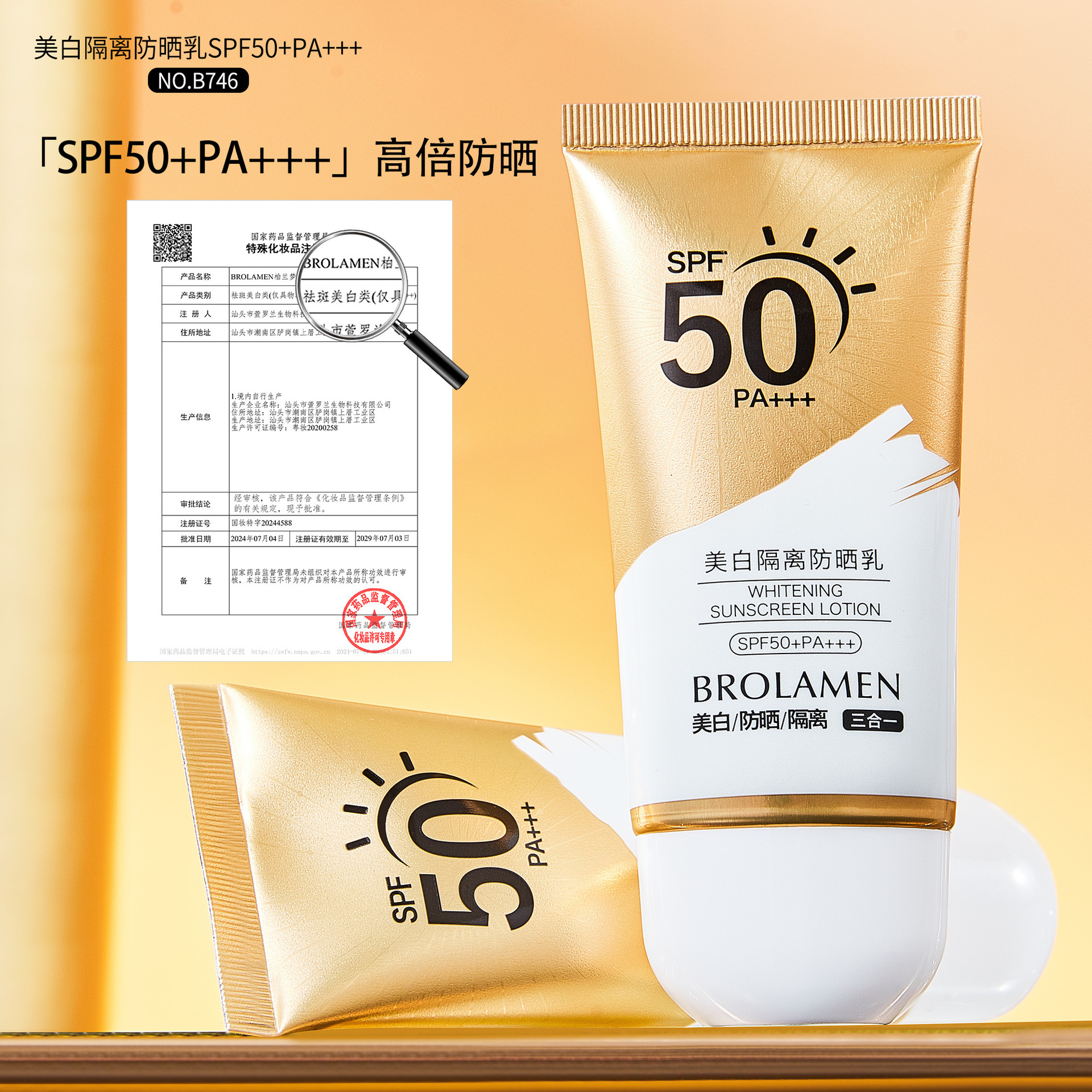 美白アイソレーション日焼け止め SPF50+PA+++BROLAMEN 日焼け防止 日焼け止め 黒防水 741