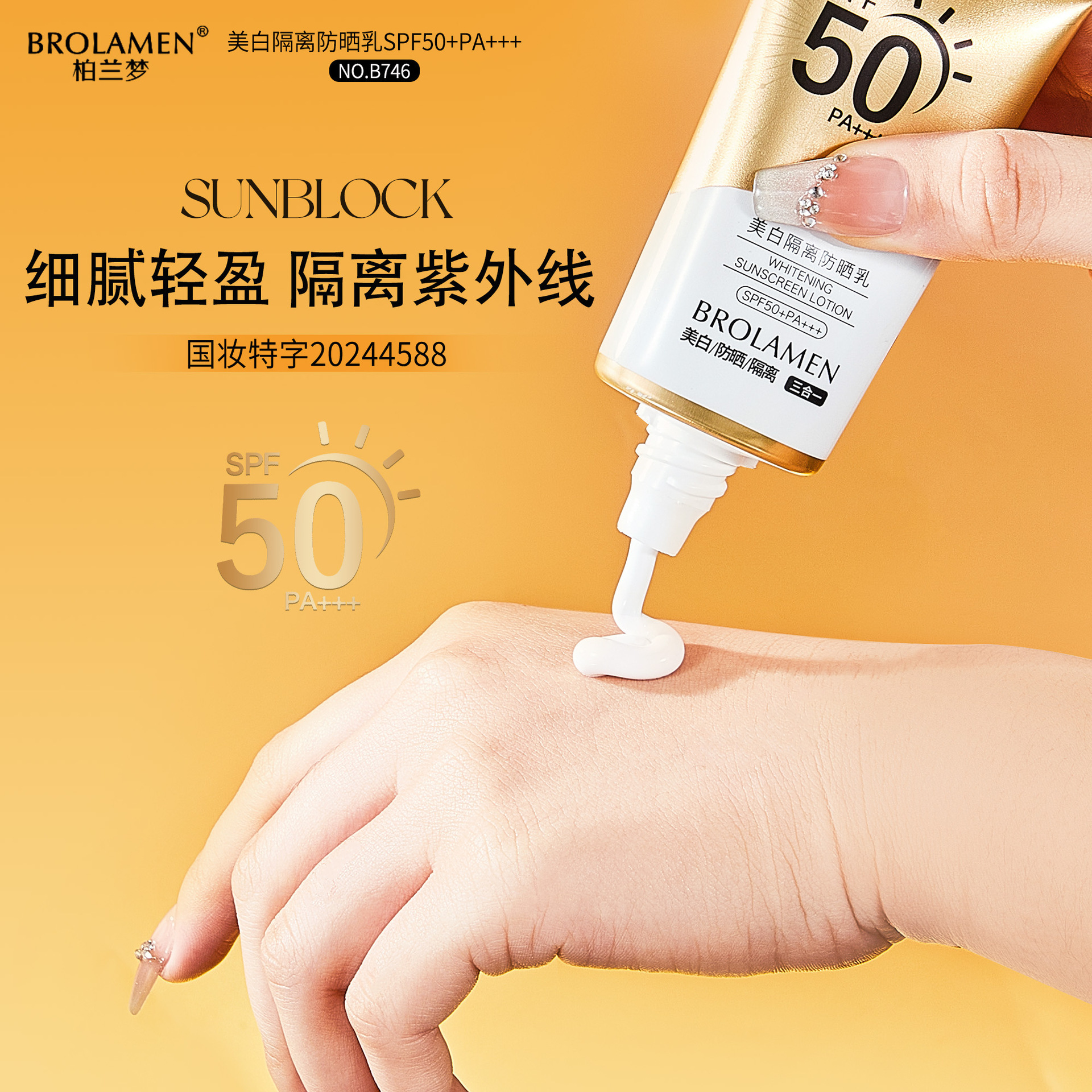 柏兰梦美白隔离防晒乳SPF50+高倍防晒隔离紫外线三合一防水防595
