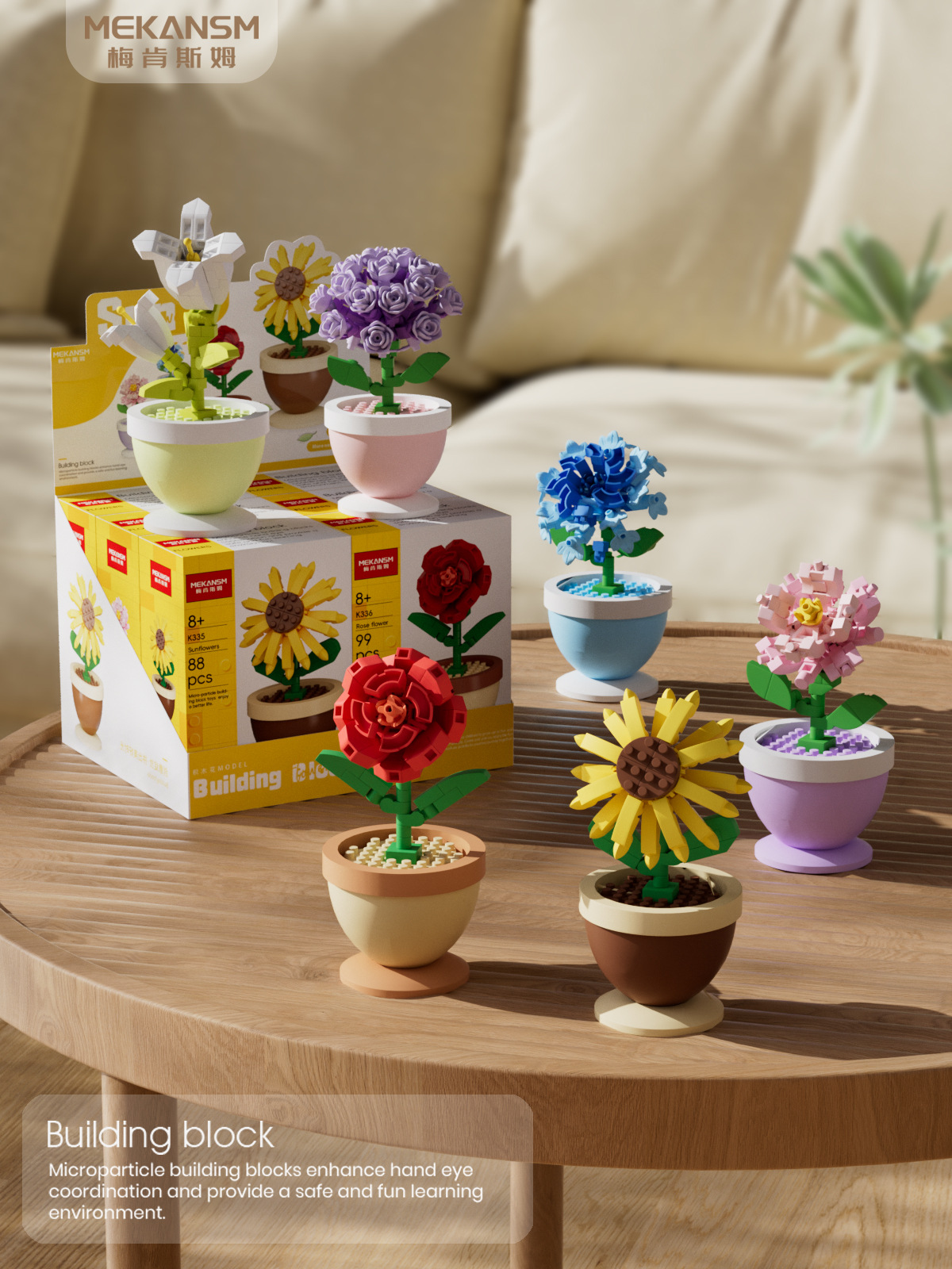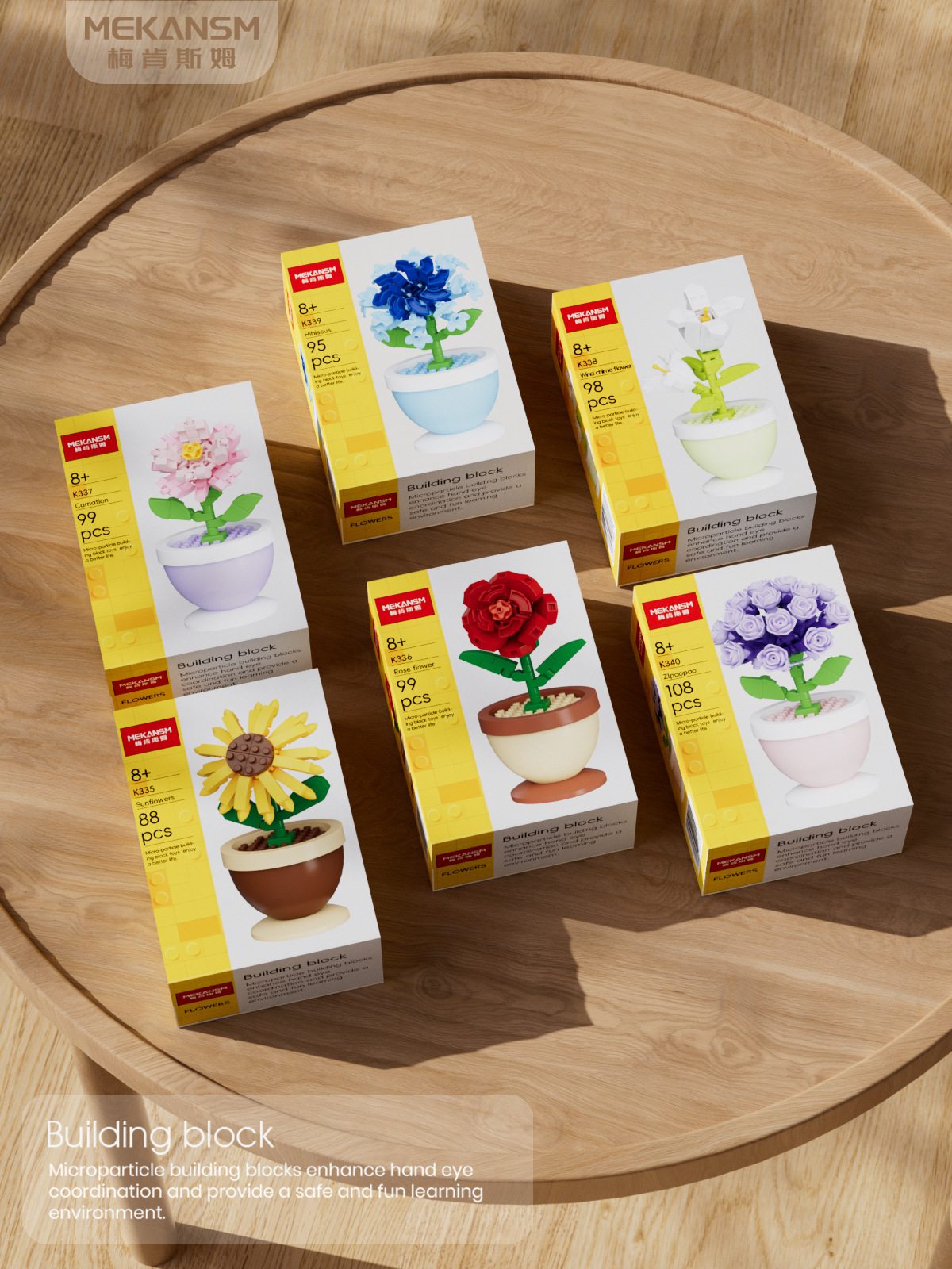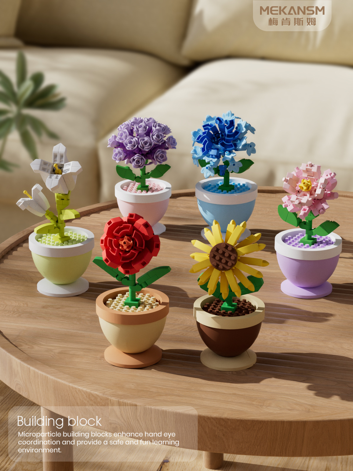 潮乐创微颗粒拼装积木积花纳福发财树永生花玩具摆件新年礼物