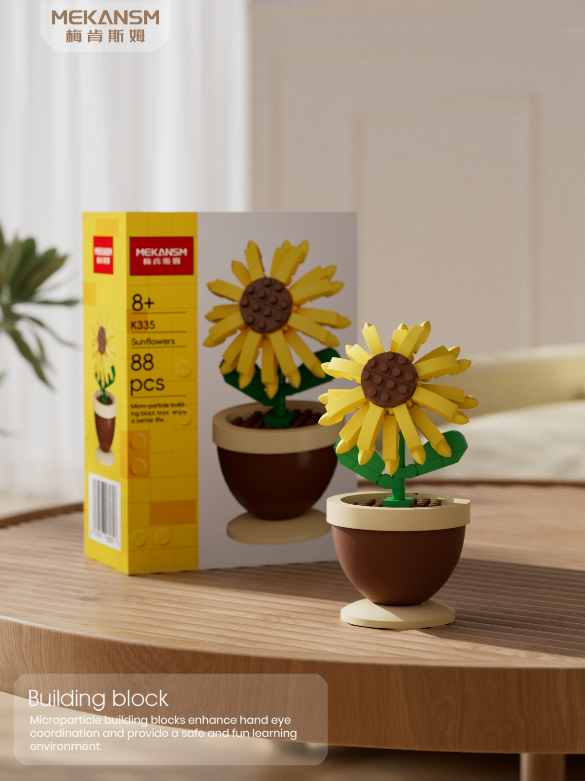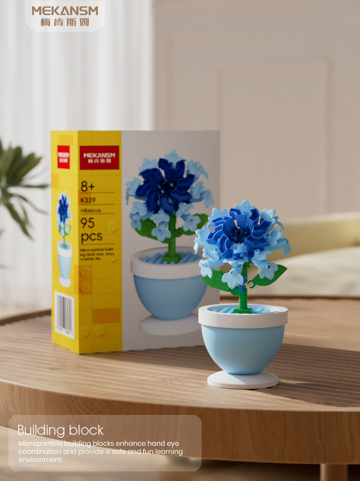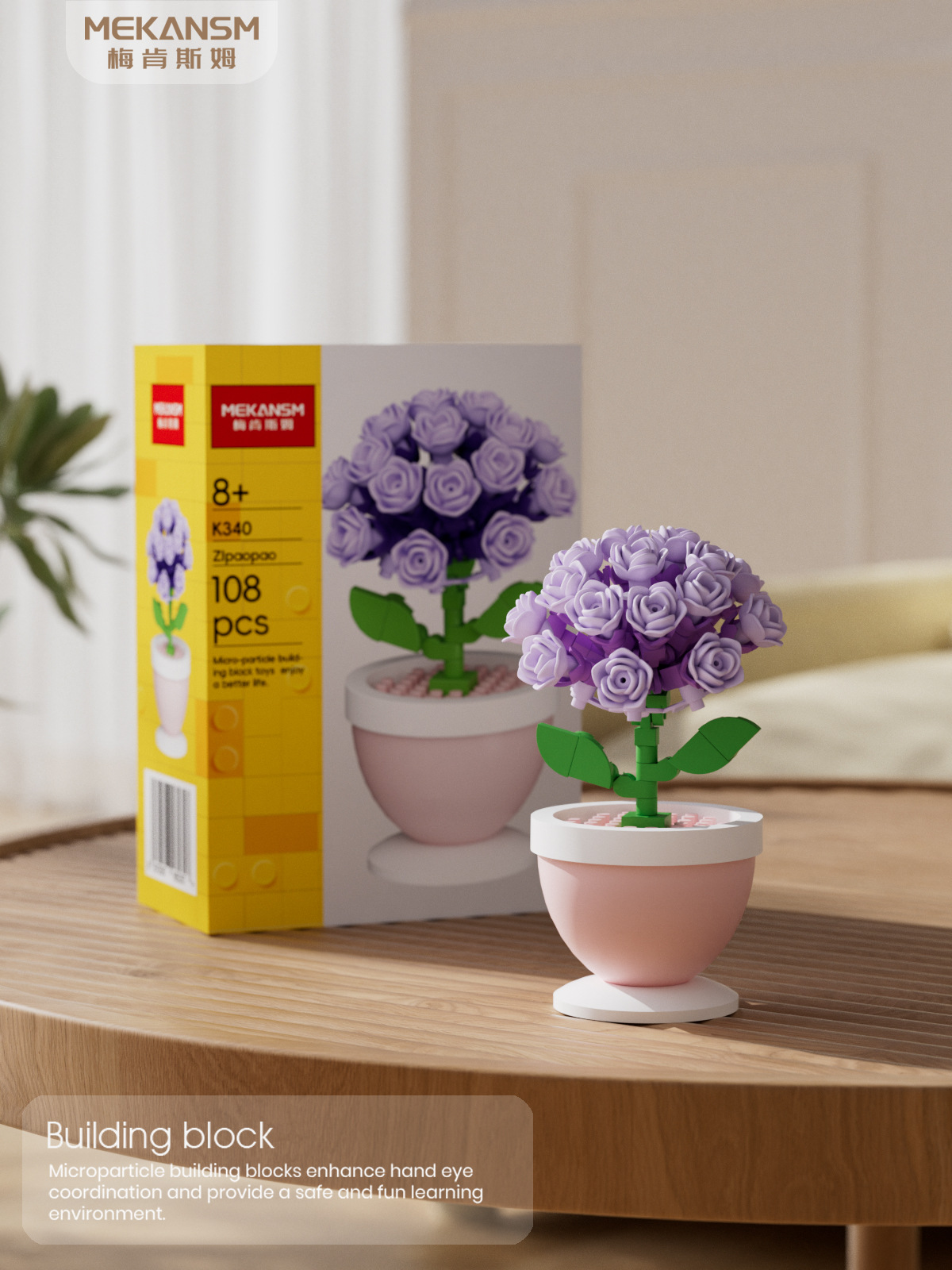 潮乐创微颗粒拼装积木积花纳福发财树永生花玩具摆件新年礼物