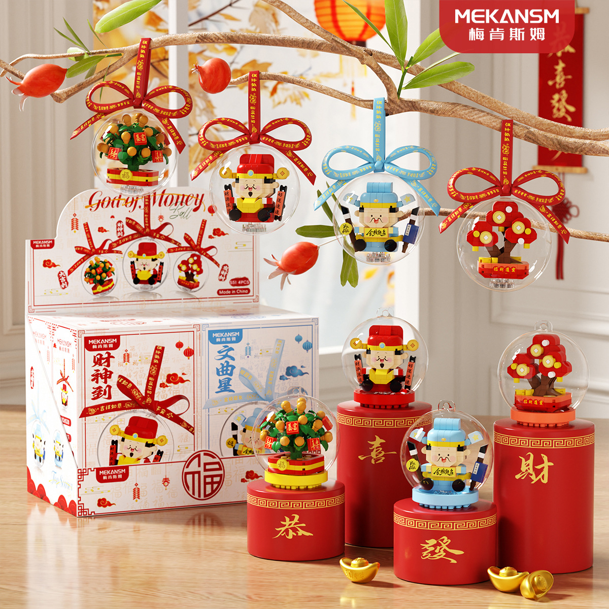 梅肯斯姆K526-K529祥瑞福运宝球微颗粒拼装积木摆件新年礼物