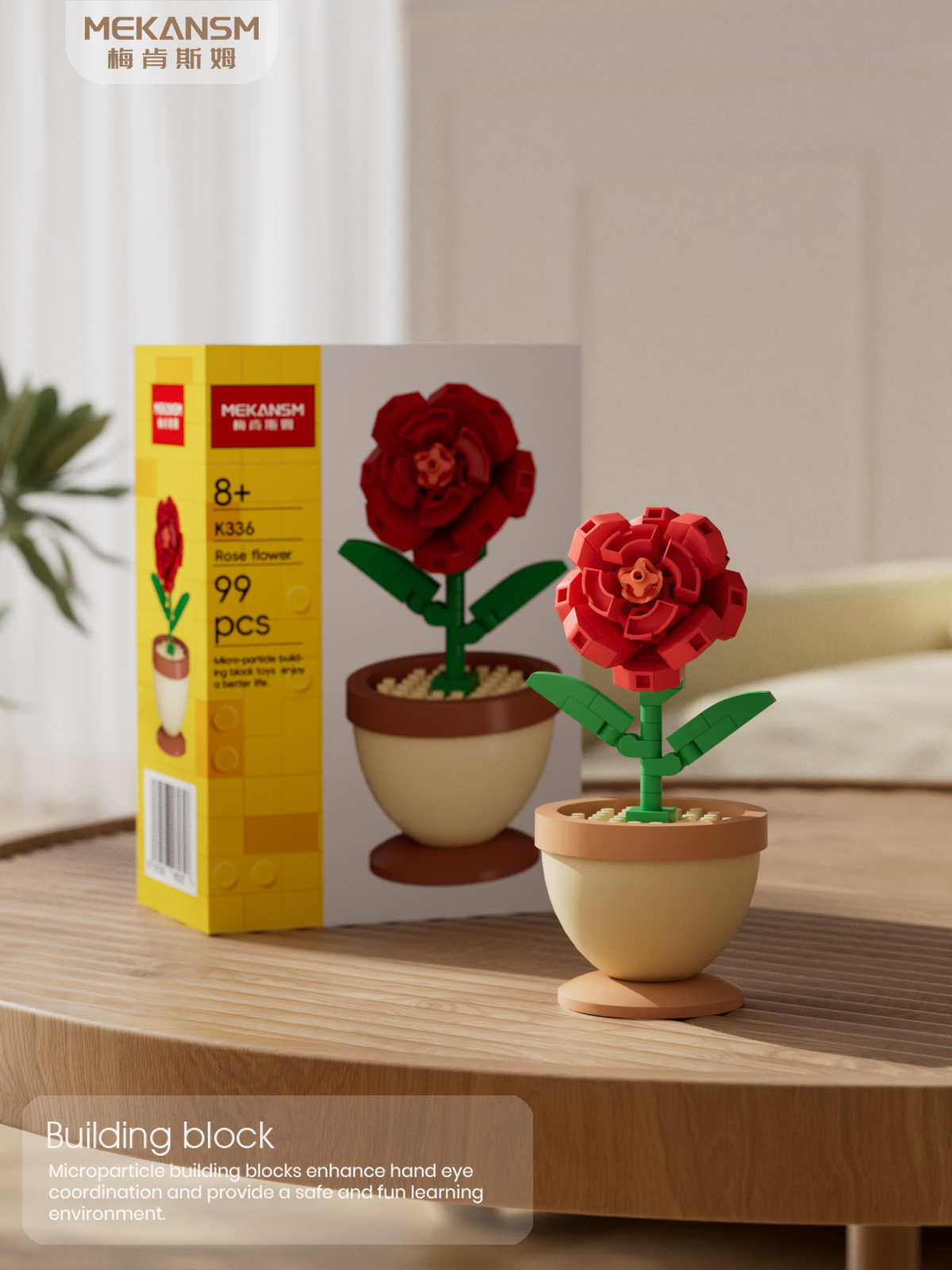 梅肯斯姆框中花影微颗粒拼装益智积木玩具摆件情人节女生日礼物