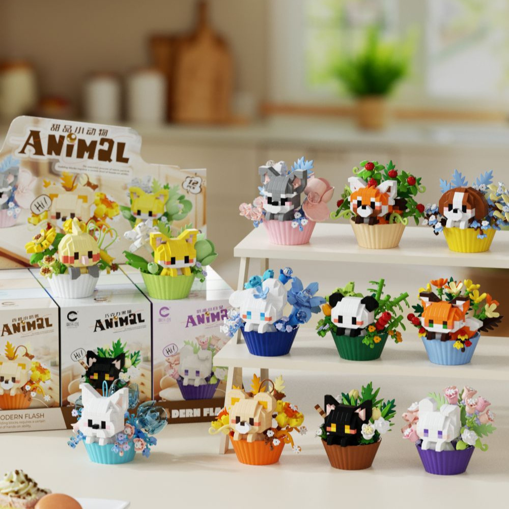 潮乐创7492-7503帕恰狗玉桂狗甜品小盆栽微小颗粒益智拼装玩具