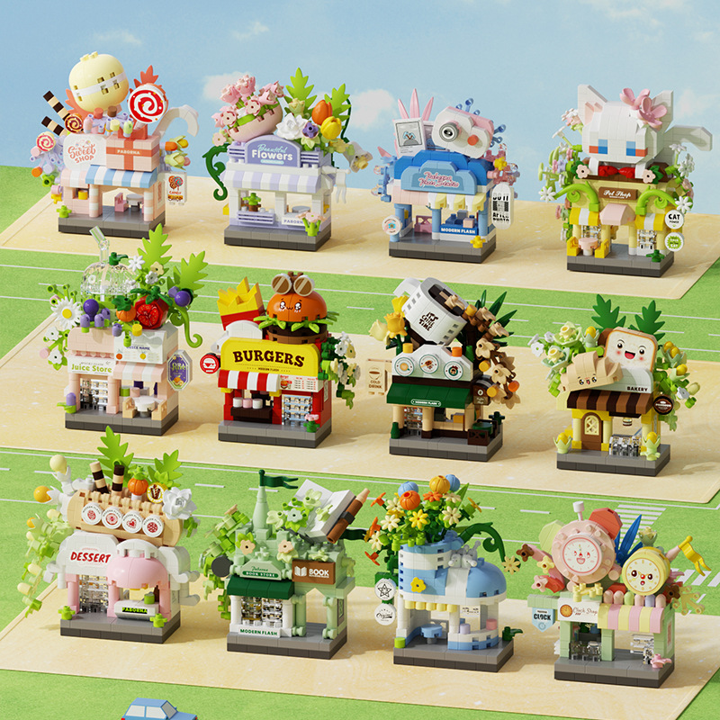 クロスボーダー街角フラワーショップストリートシーンプリザーブドフラワービルディングブロック微粒子装飾品子供女の子おもちゃギフト卸売