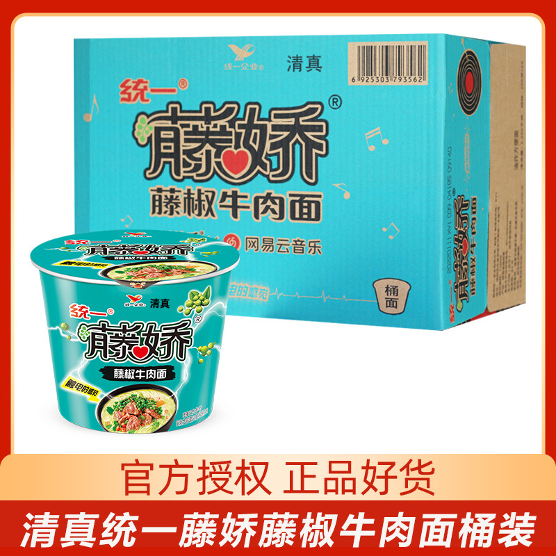 清真食品统一藤椒牛肉面12桶装方便面整箱夜宵速食面泡面批发代发