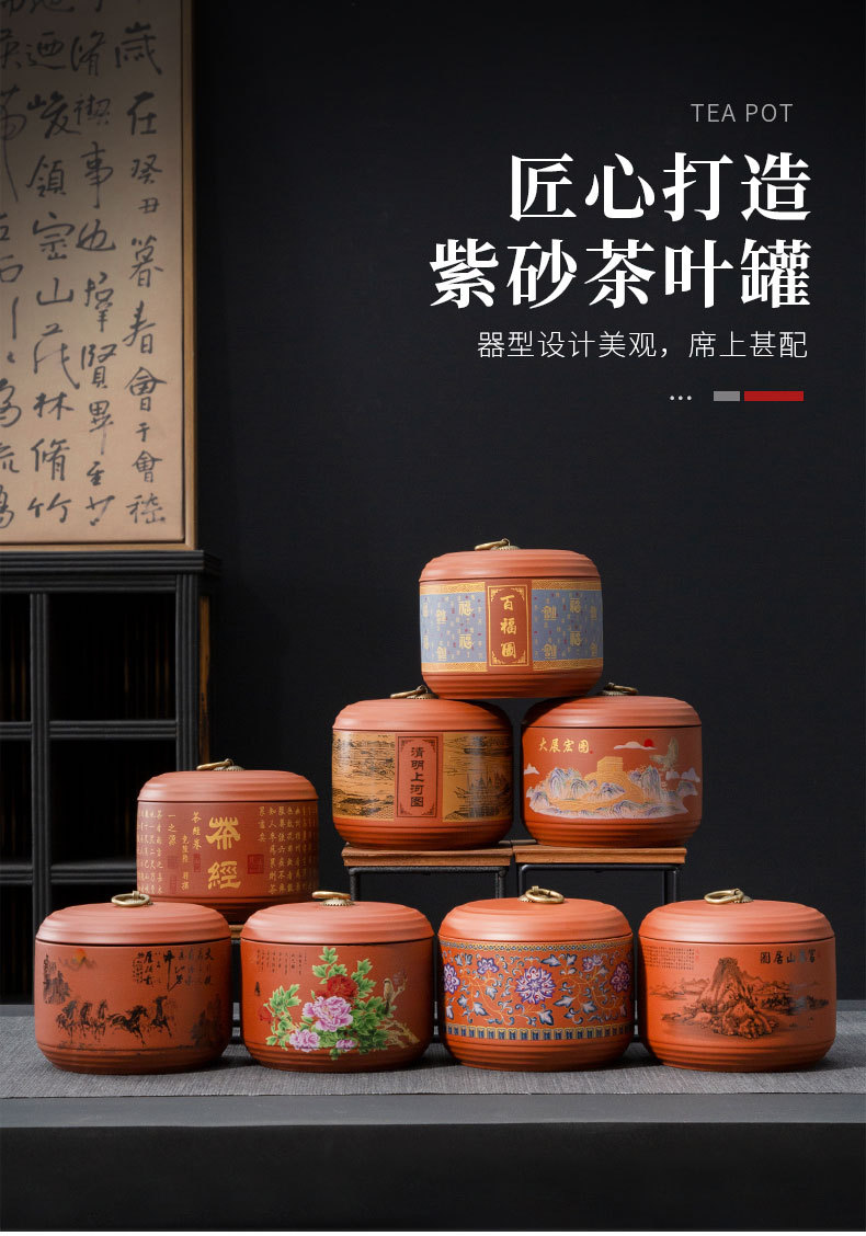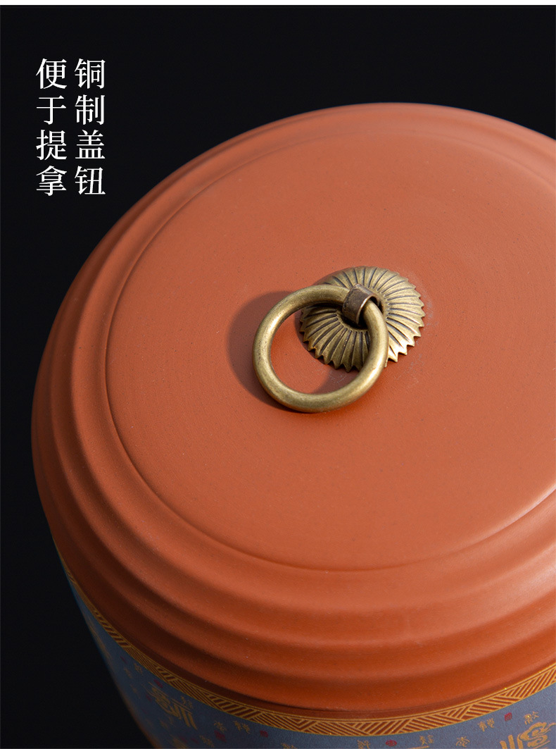 紫砂茶缶 陶器 家庭用 大型茶餅缶 プーアル茶餅包装箱 茶保存缶 茶発酵缶 山水画