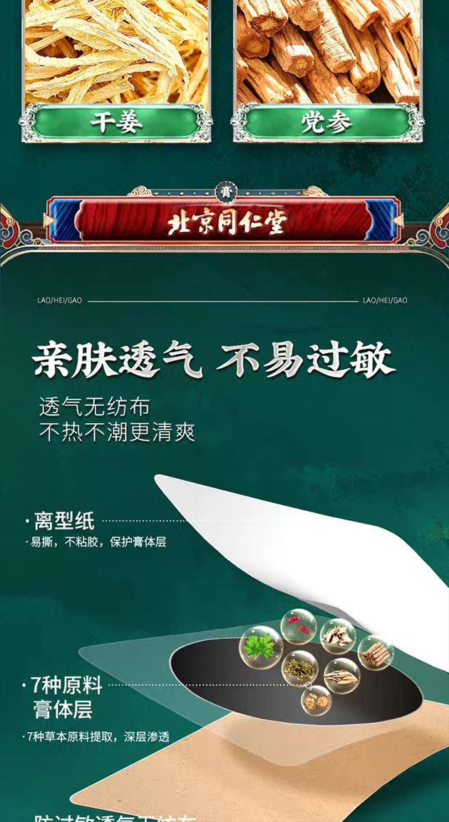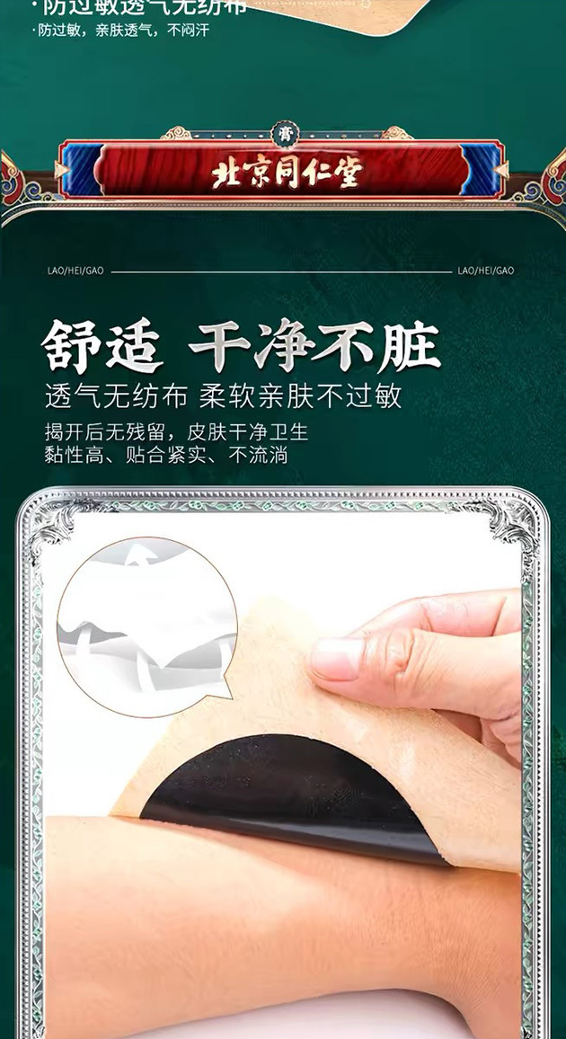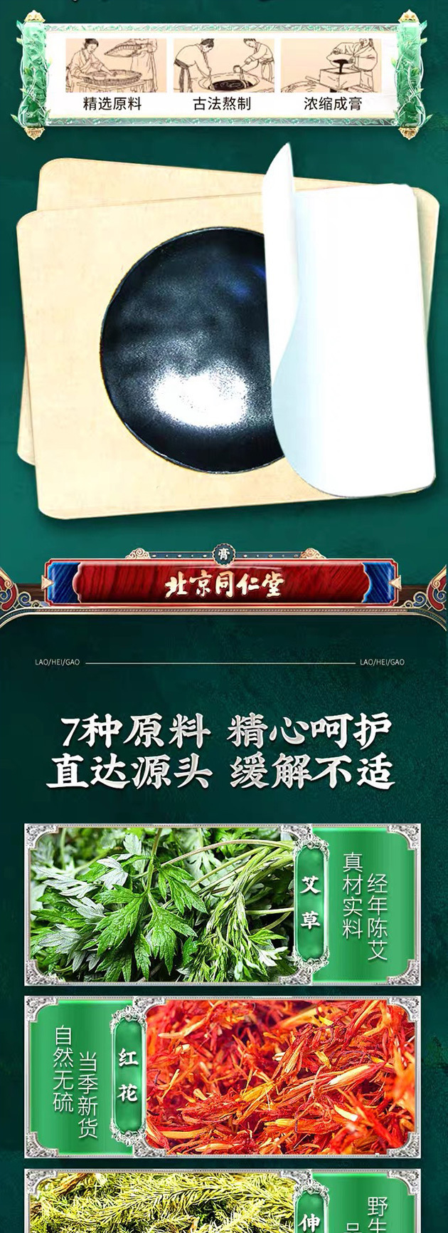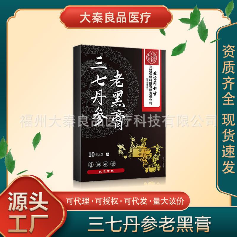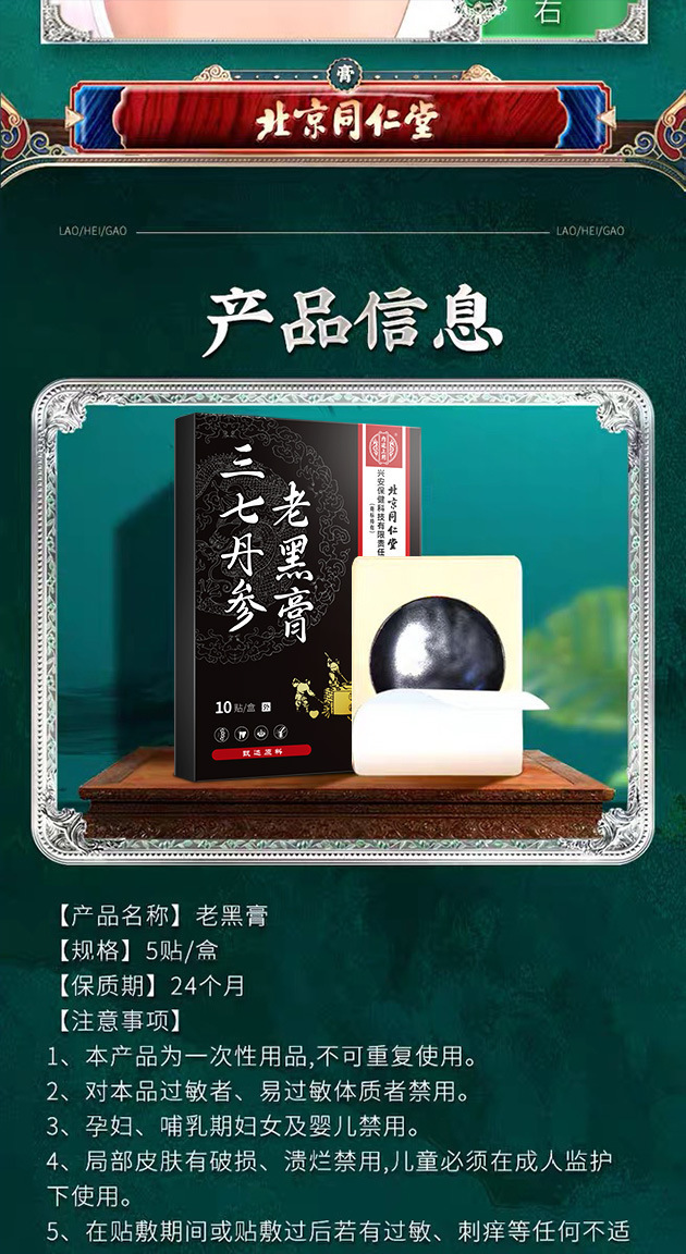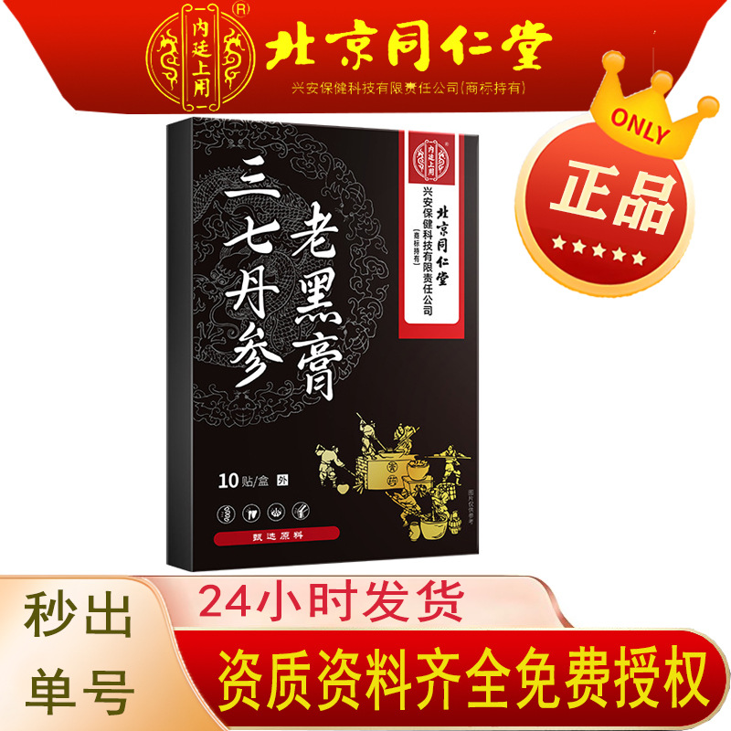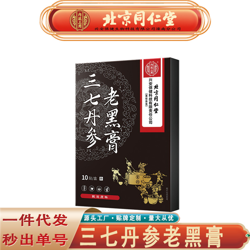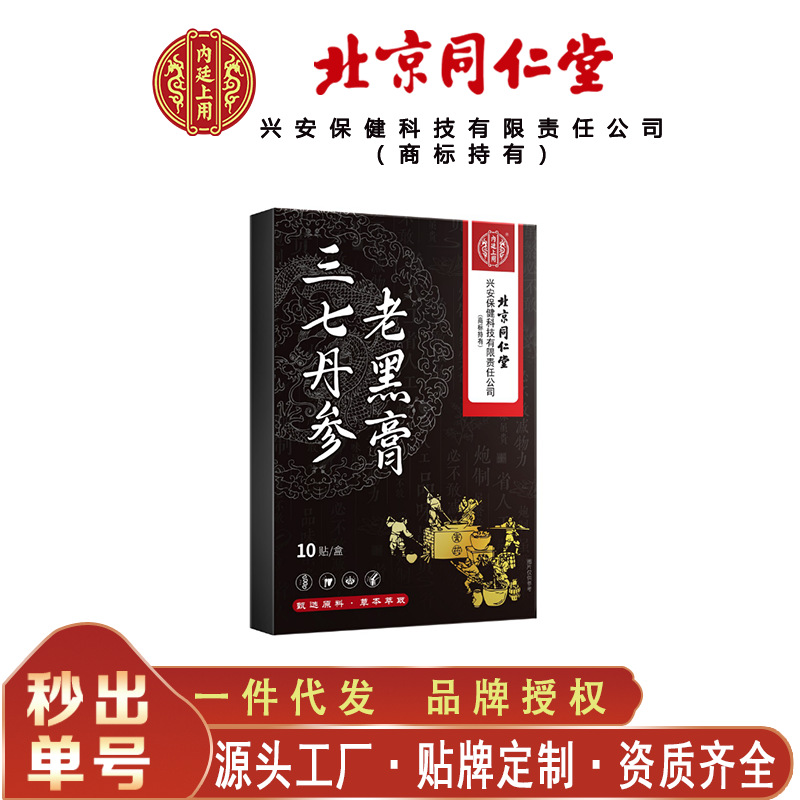 北京同仁堂内廷上用三七丹参老黑膏 10贴/盒无痕代发