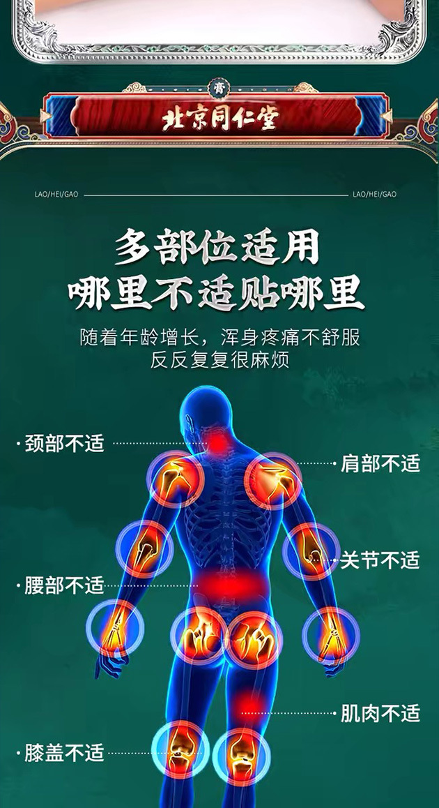 北京同仁堂内廷上用三七丹参老黑膏用肩颈腰腿关节贴贴膏膝盖腰椎