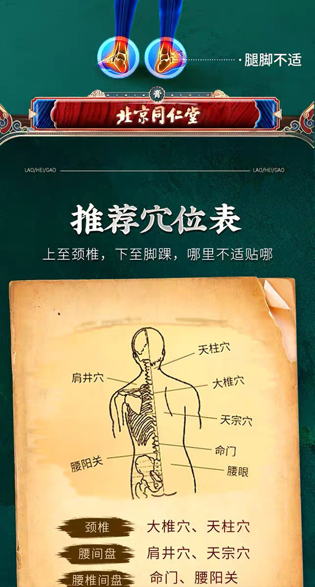 李時珍腰椎ツボ貼り腰椎突出労損貼付座骨神経脚麻痛み膏貼り