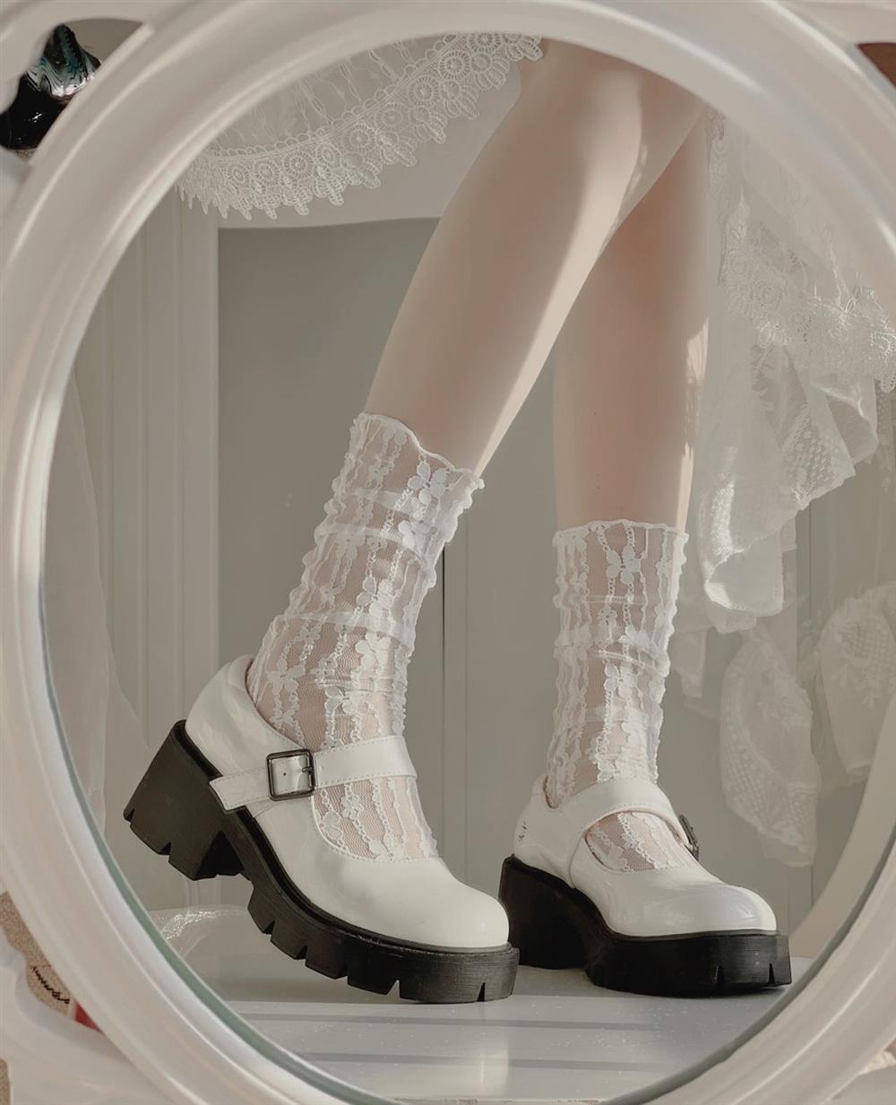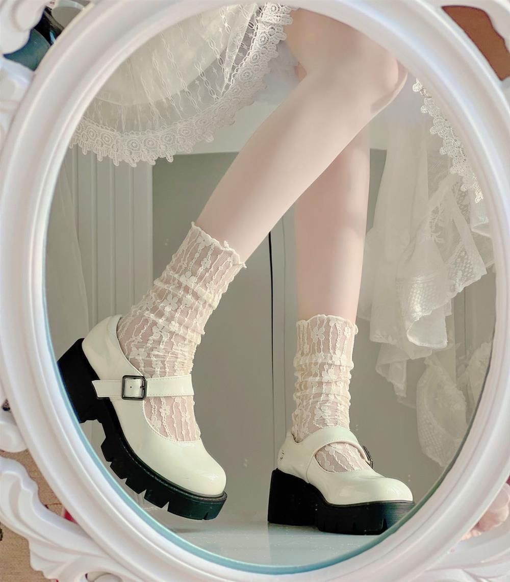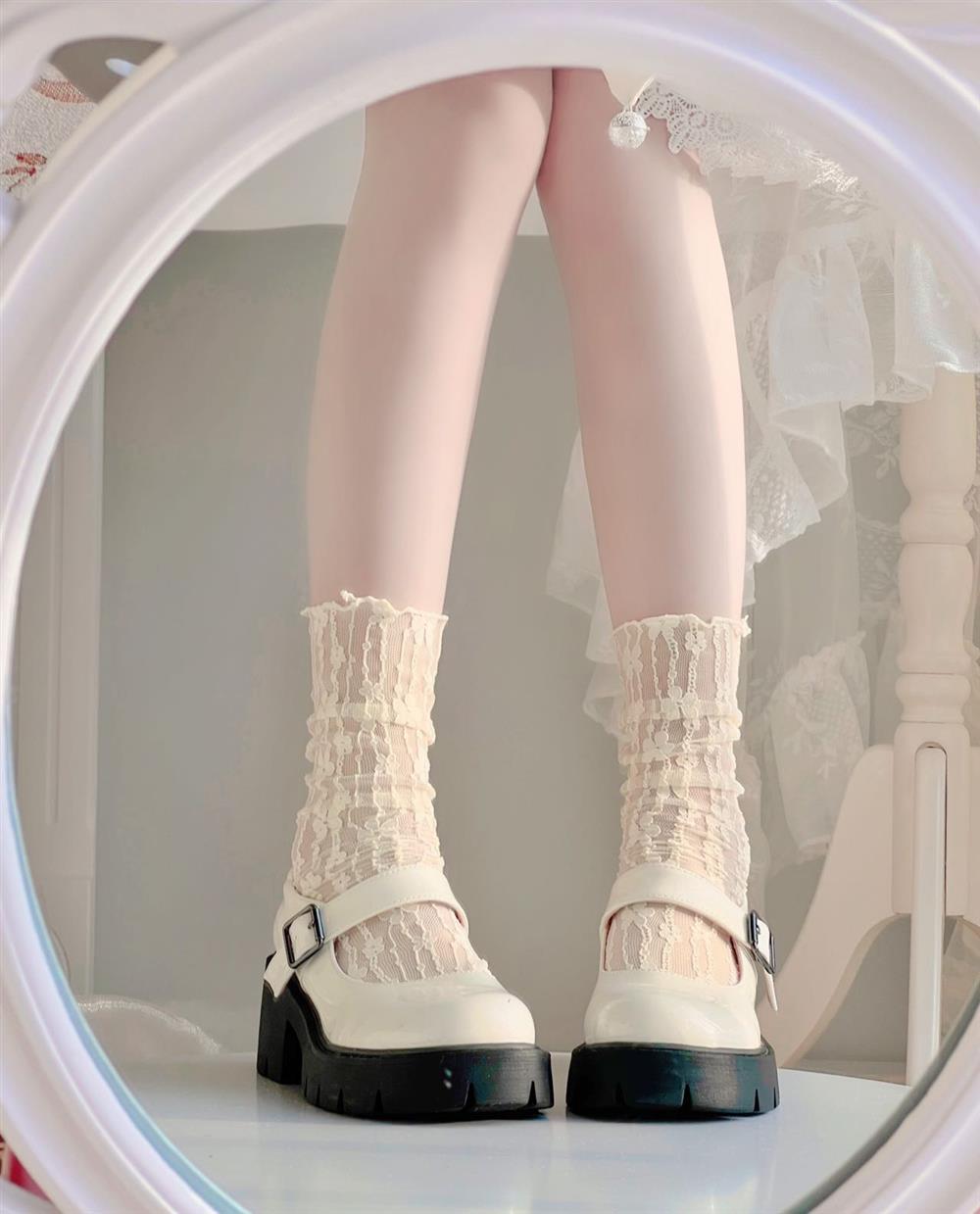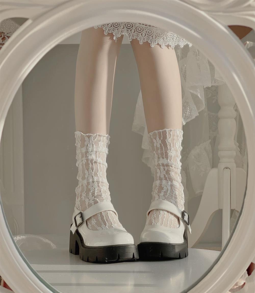 レースフラワーメッシュ通気性ソックス レディース 小清新 ミドル丈 新作 メッシュ 日系 JK風 甘め 重ね履き カジュアル