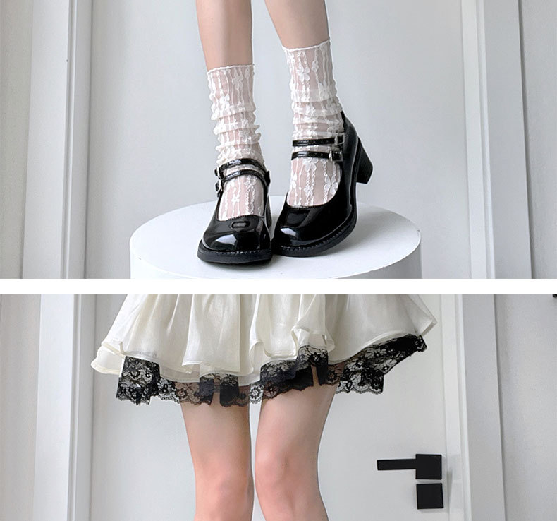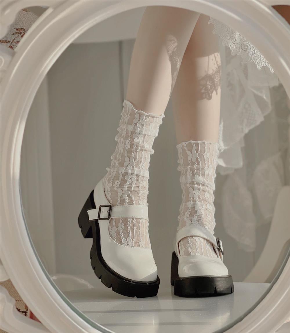 女性用夏用薄い中空通気性レースソックス、メリージェーンシューズ、パイルソックス、耳付きソックス、レースミッドカーフソックス