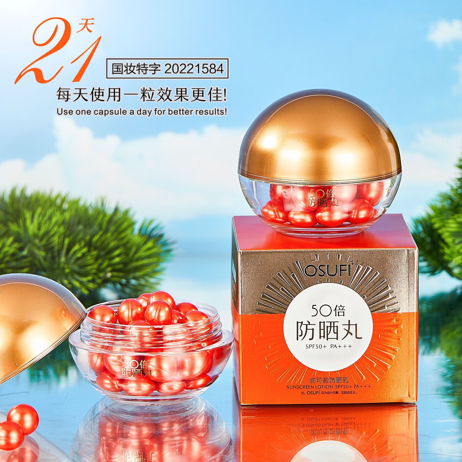 欧束菲次抛防晒霜学生军训防水防汗防紫外线滋润不粘腻隔离防晒丸