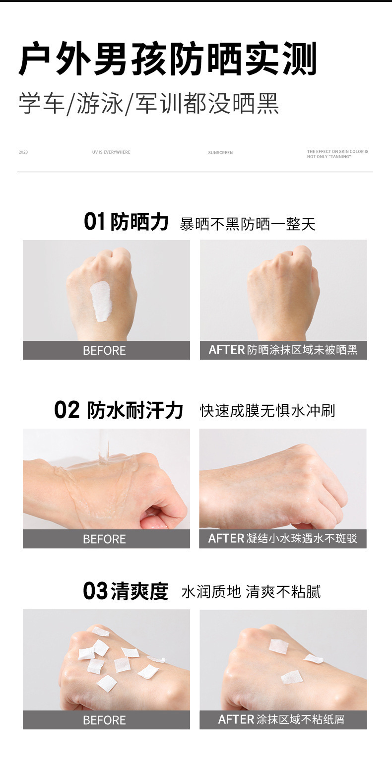Ou Shufei 学生軍事訓練用日焼け止め、防水、汗防止、UV 保護、保湿、非粘着性、隔離日焼け止め錠剤