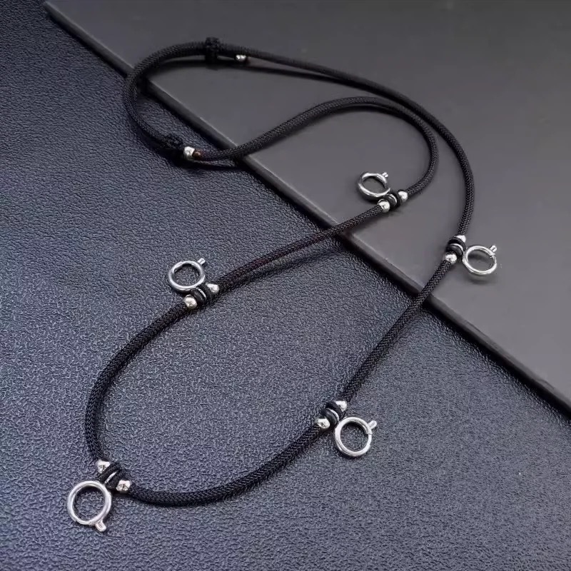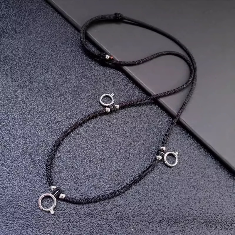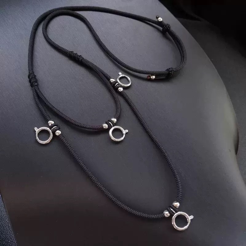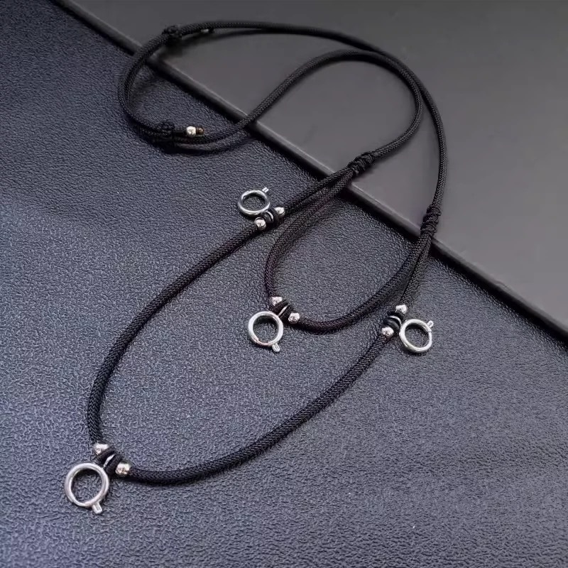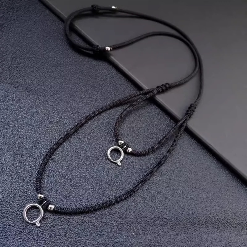 抖音で話題のペンダントストラップ、翡翠用留め金付きストラップ、高級925シルバー製吊り下げ紐、卸売調整可能ライブストラップ