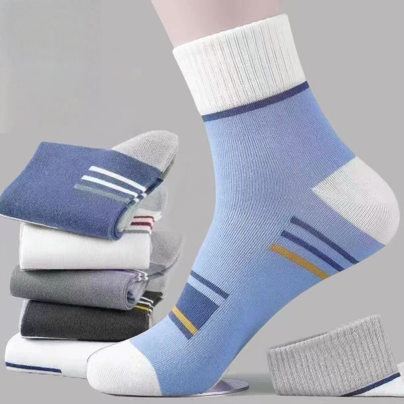 诸暨袜业男袜秋冬新款拼色中筒袜简约百搭吸汗舒适耐穿潮流运动袜