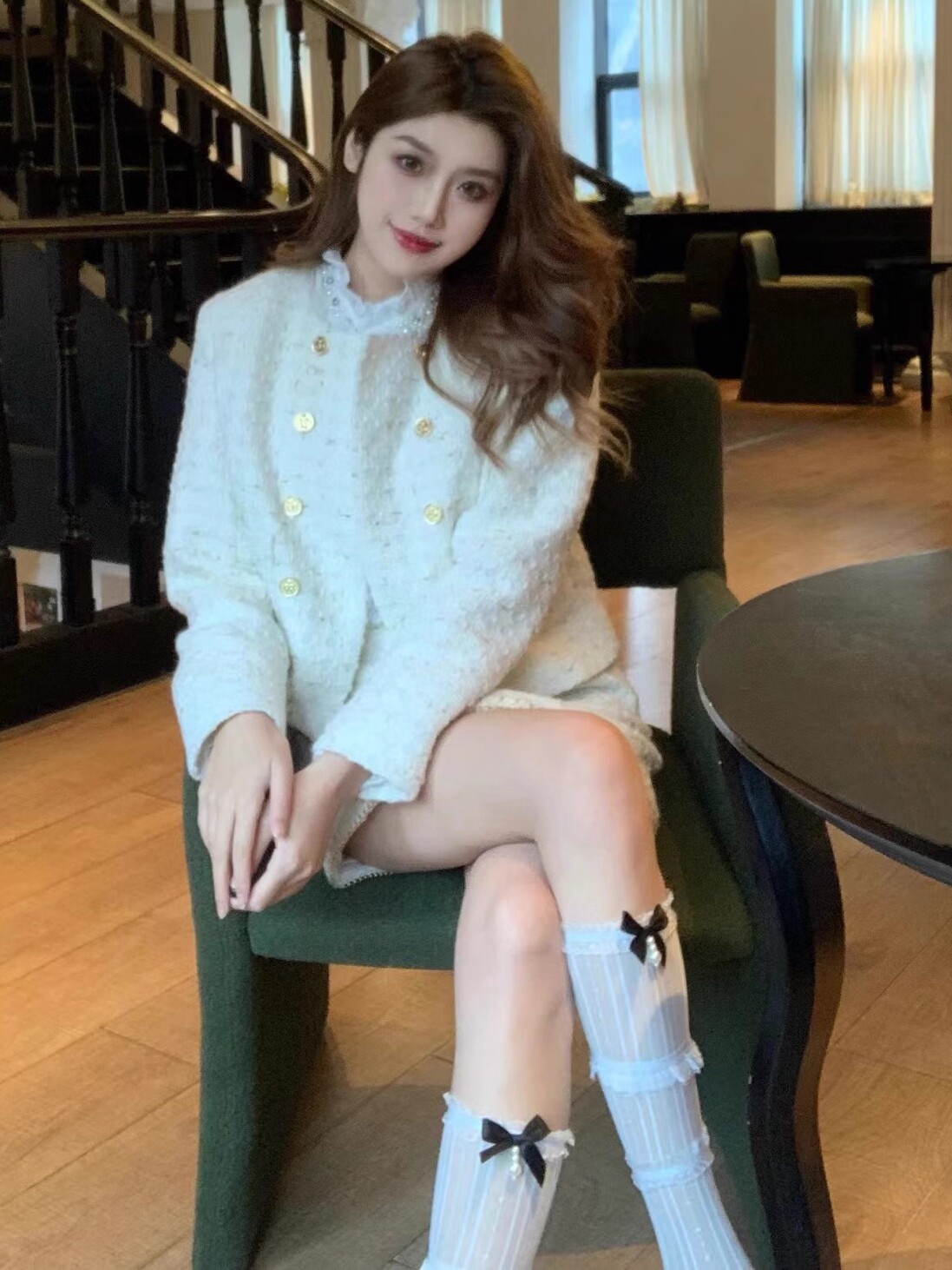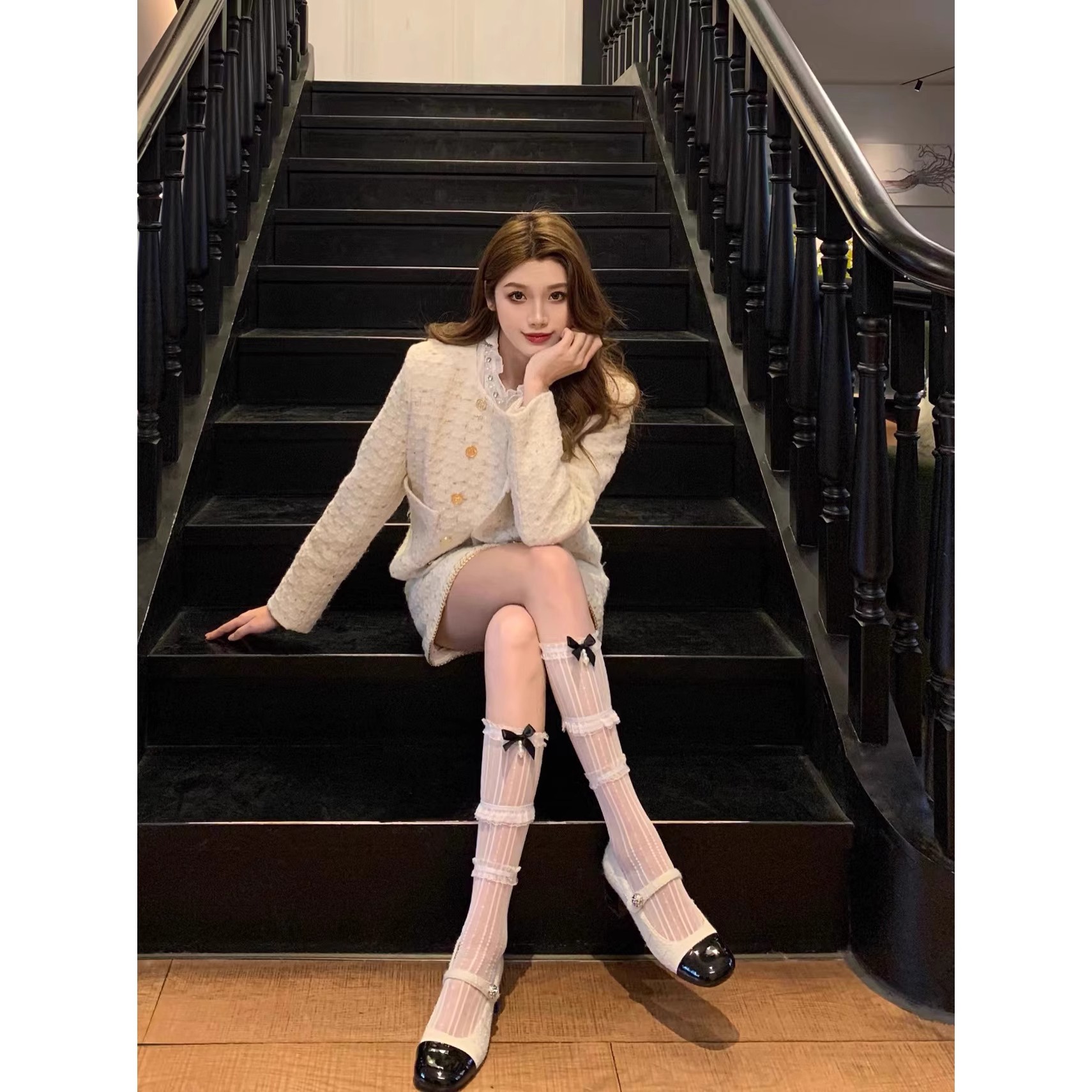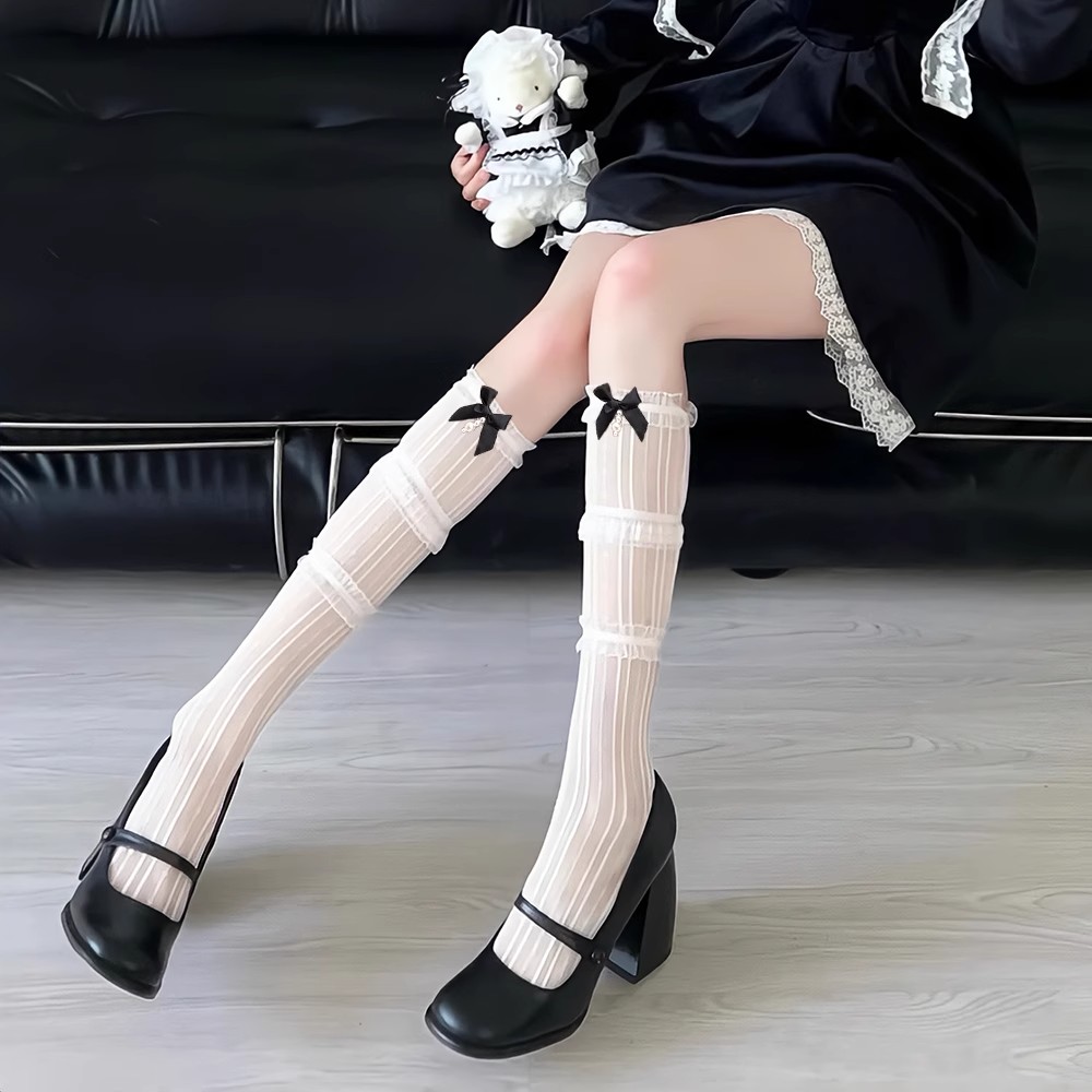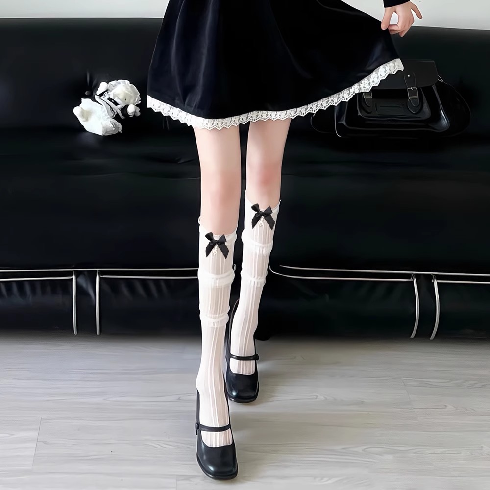 ロリータクロス蝶結びガラス糸ひも膝丈ストッキング白い太ももソックス潮かわいい日系女性ソックス