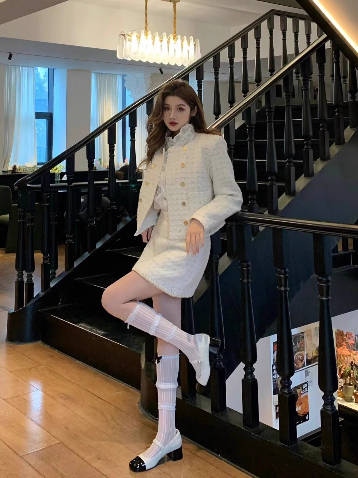 バレエ風ロリータ風ホワイトスイートレースリボン付きふくらはぎ丈ソックス JK風夏用薄手重ね履きミドルソックス レディース