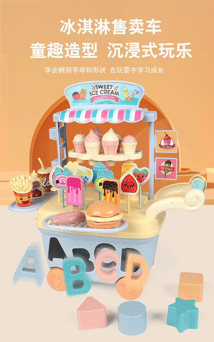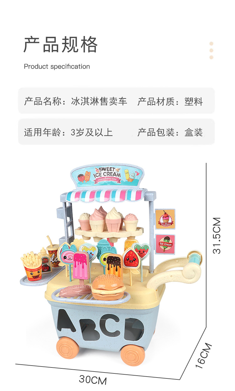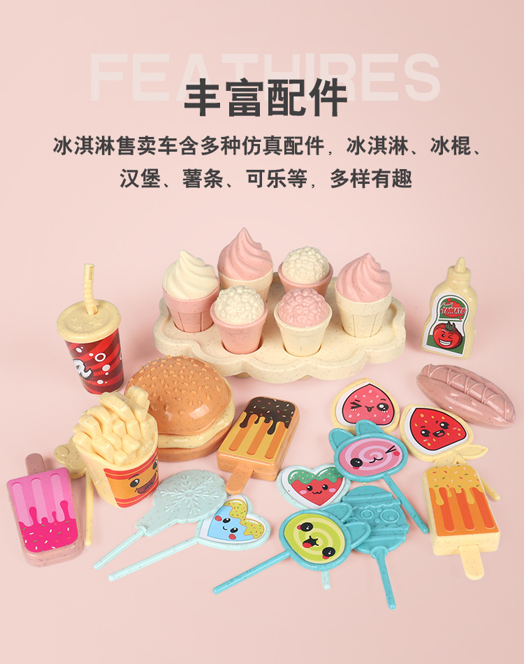 子供用ままごとアイスクリームアイスクリームカートアイスクリームおもちゃキッチンセット3から6歳の女の子の誕生日プレゼント