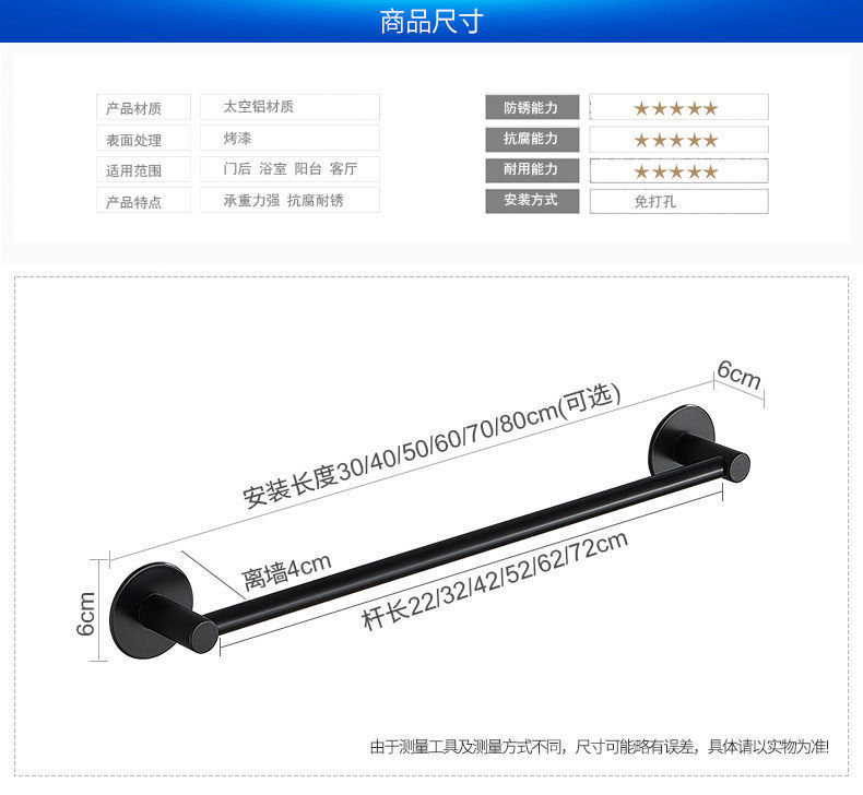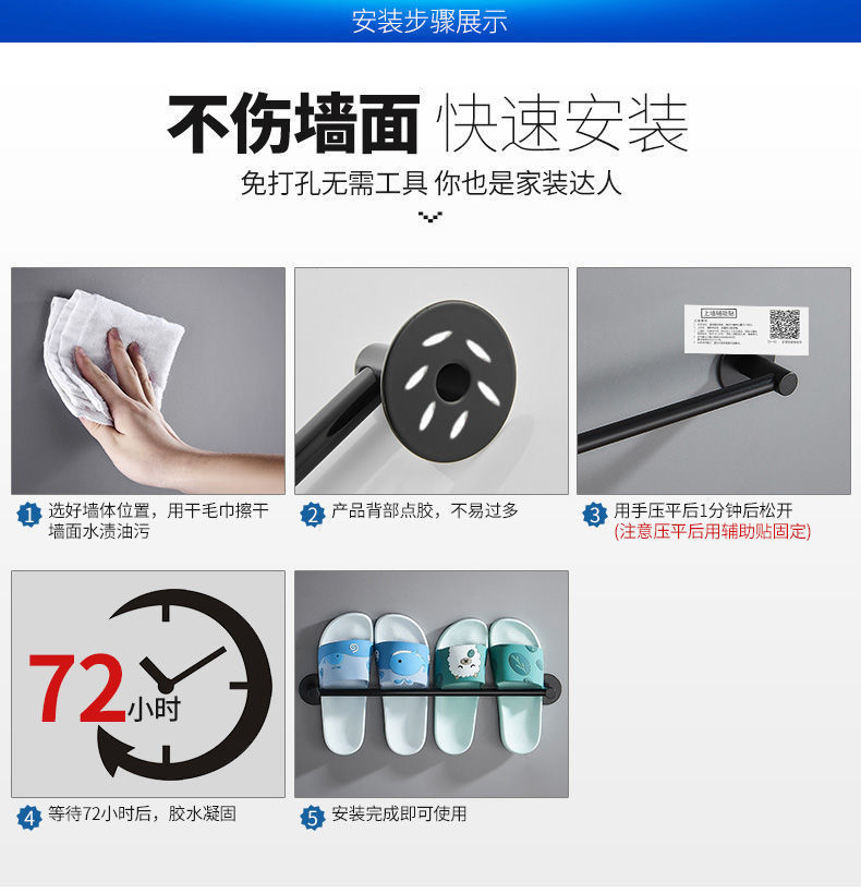 パンチングなしのバスルームシングルバータオルラック、トイレバスタオルラック、バスルームタオルラック、バスルーム家具