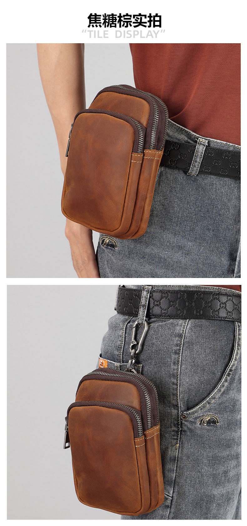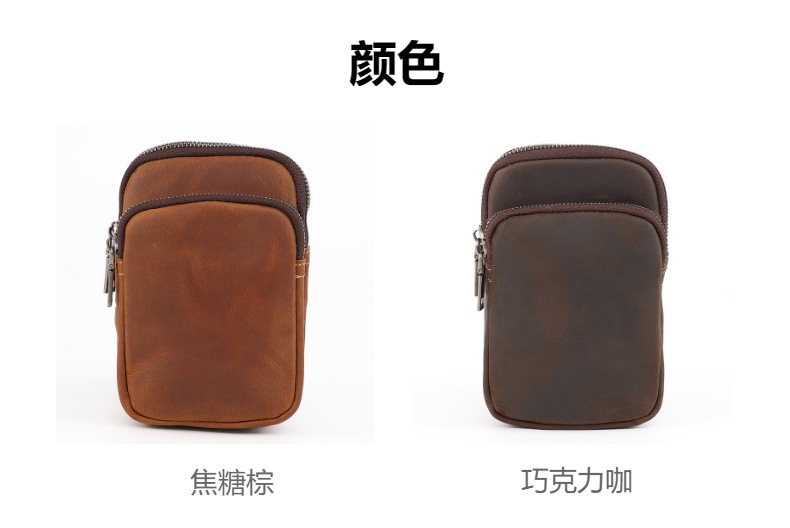 设计感复古疯马皮腰挂包拉链拉链钥匙卡包门用车用复古要包钥匙包