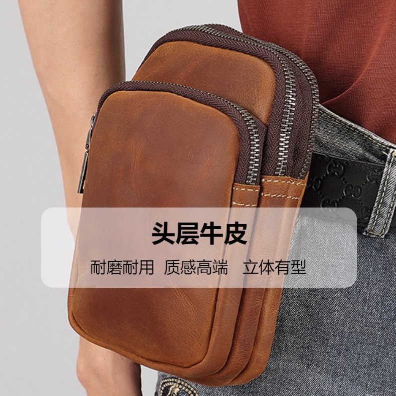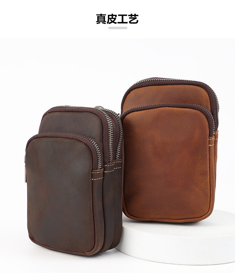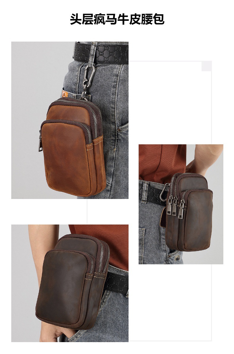 建設現場作業用のユニバーサルメンズ携帯電話ウエストバッグ、第一層牛革クレイジーホーススキンクラフトメンズウォレットバッチ