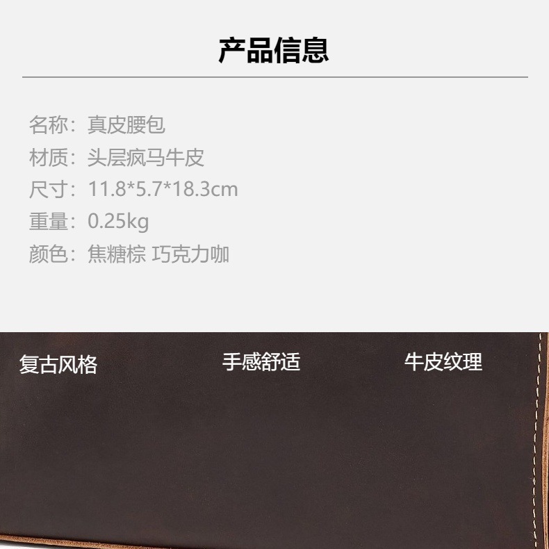 3614 レトロなクレイジーホースレザー、アマゾン供給、メンズウエストバッグ、欧米風トレンド、本革メンズバッグ、耐摩耗性、実用的