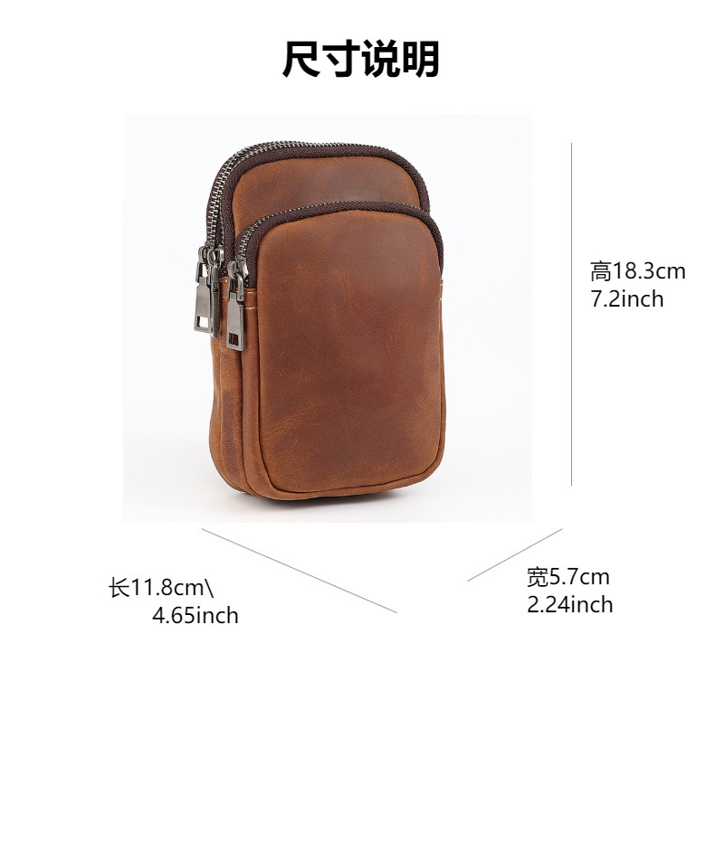 古潮客復古狂馬皮腰包頭層牛皮ベルトを着て真皮多機能7インチ携帯電話バッグ