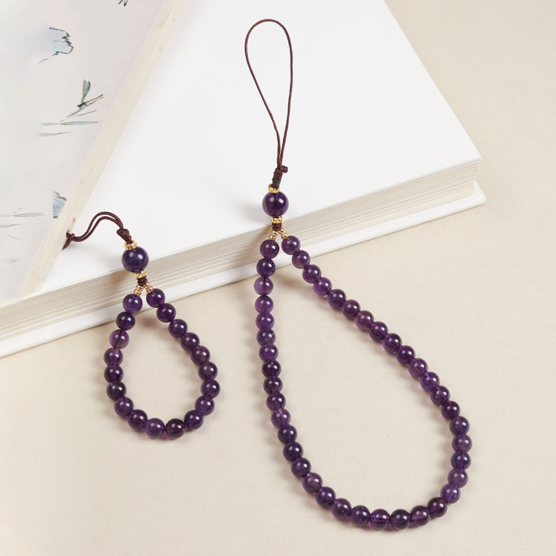 典潤 天然紫水晶携帯電話チェーン紛失防止リストストラップ中国風レトロ女性用高級手編みストラップ