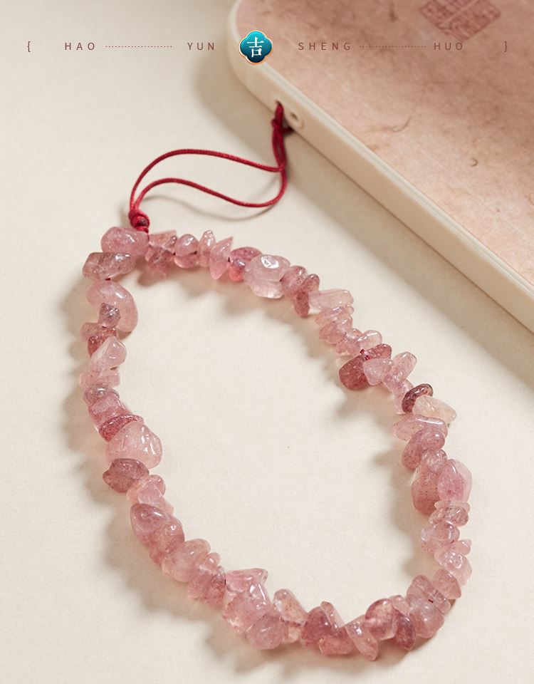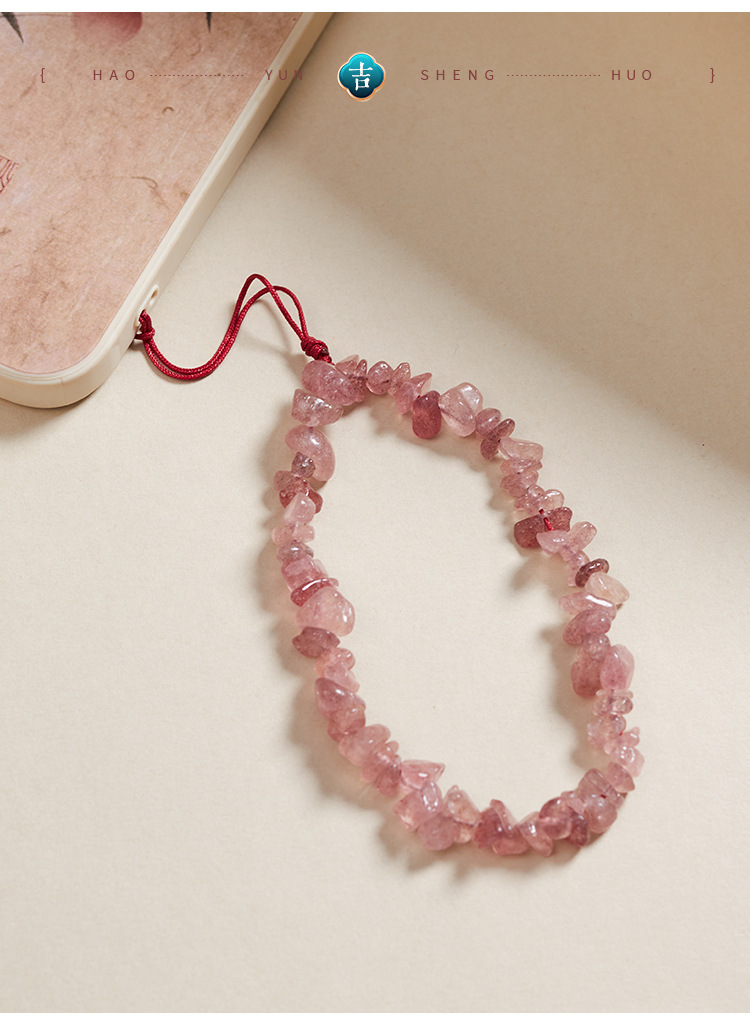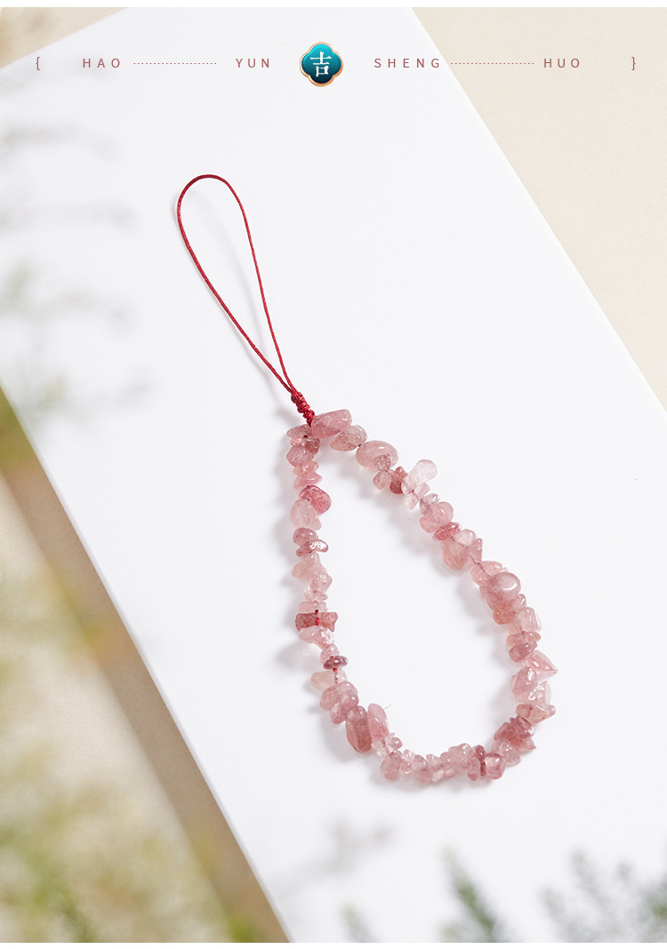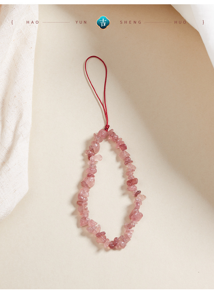 イチゴの結晶の小石の携帯電話のチェーンの少女の心はかわいいです。