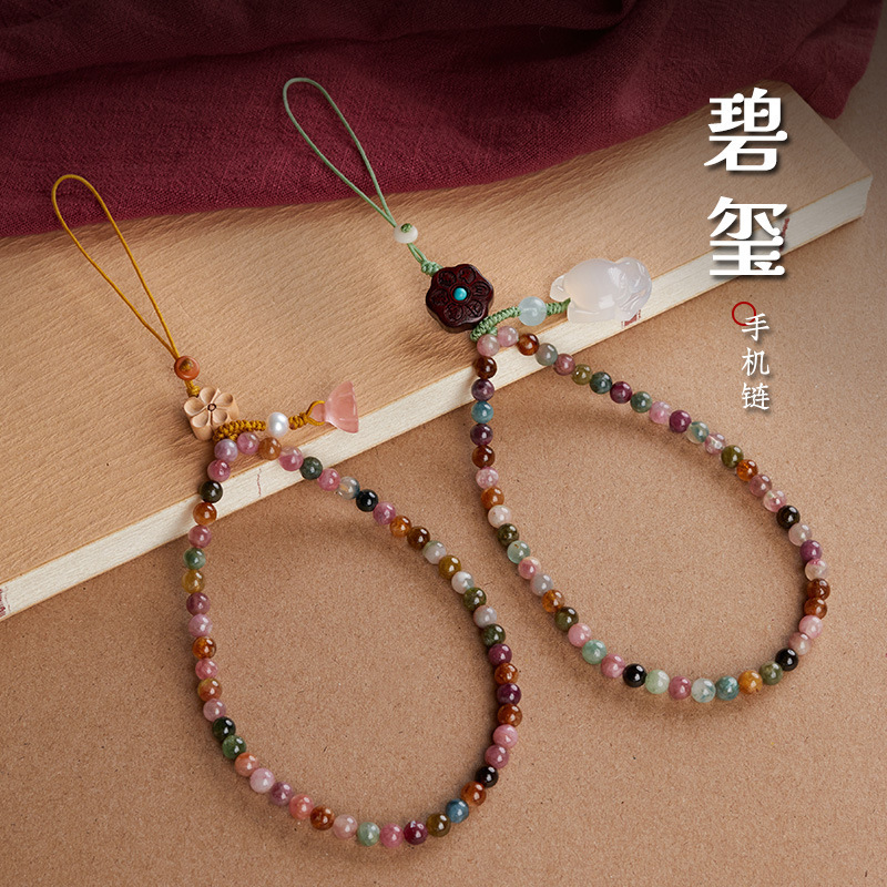 オリジナルの天然キャンディー色の碧璽の携帯電話のチェーンは手首の縄の携帯電話の携帯電話のチェーンを掛けます。