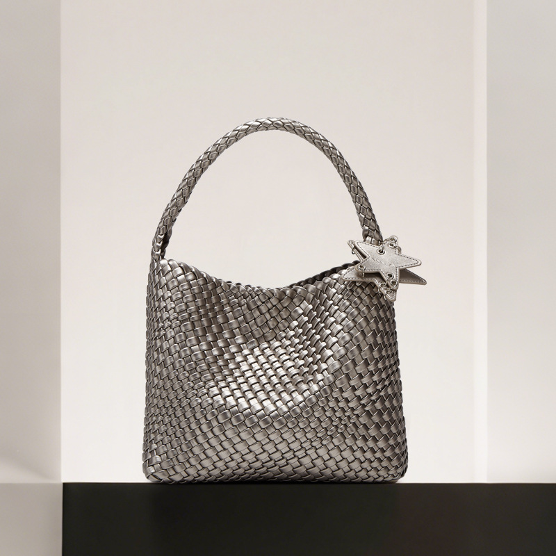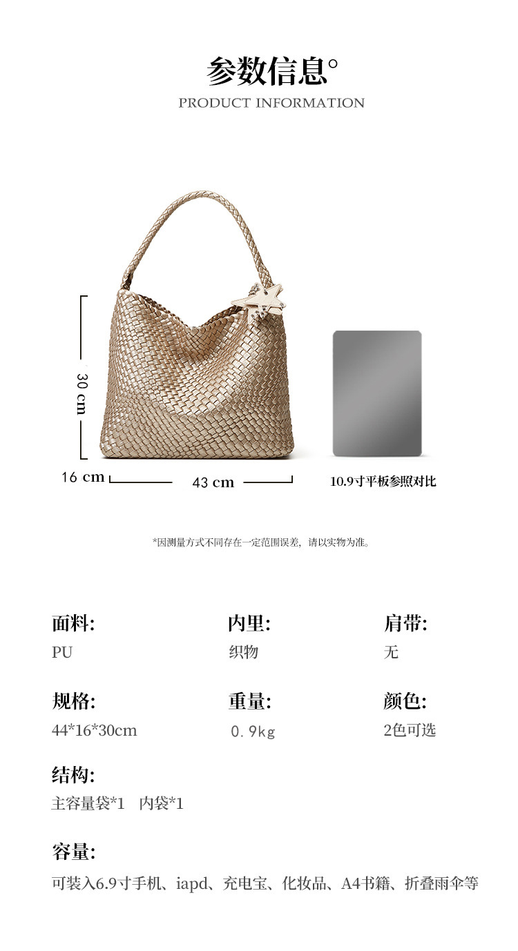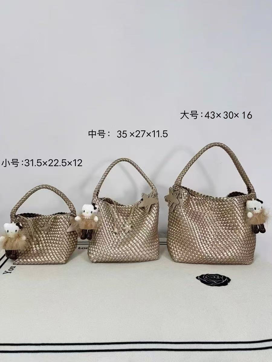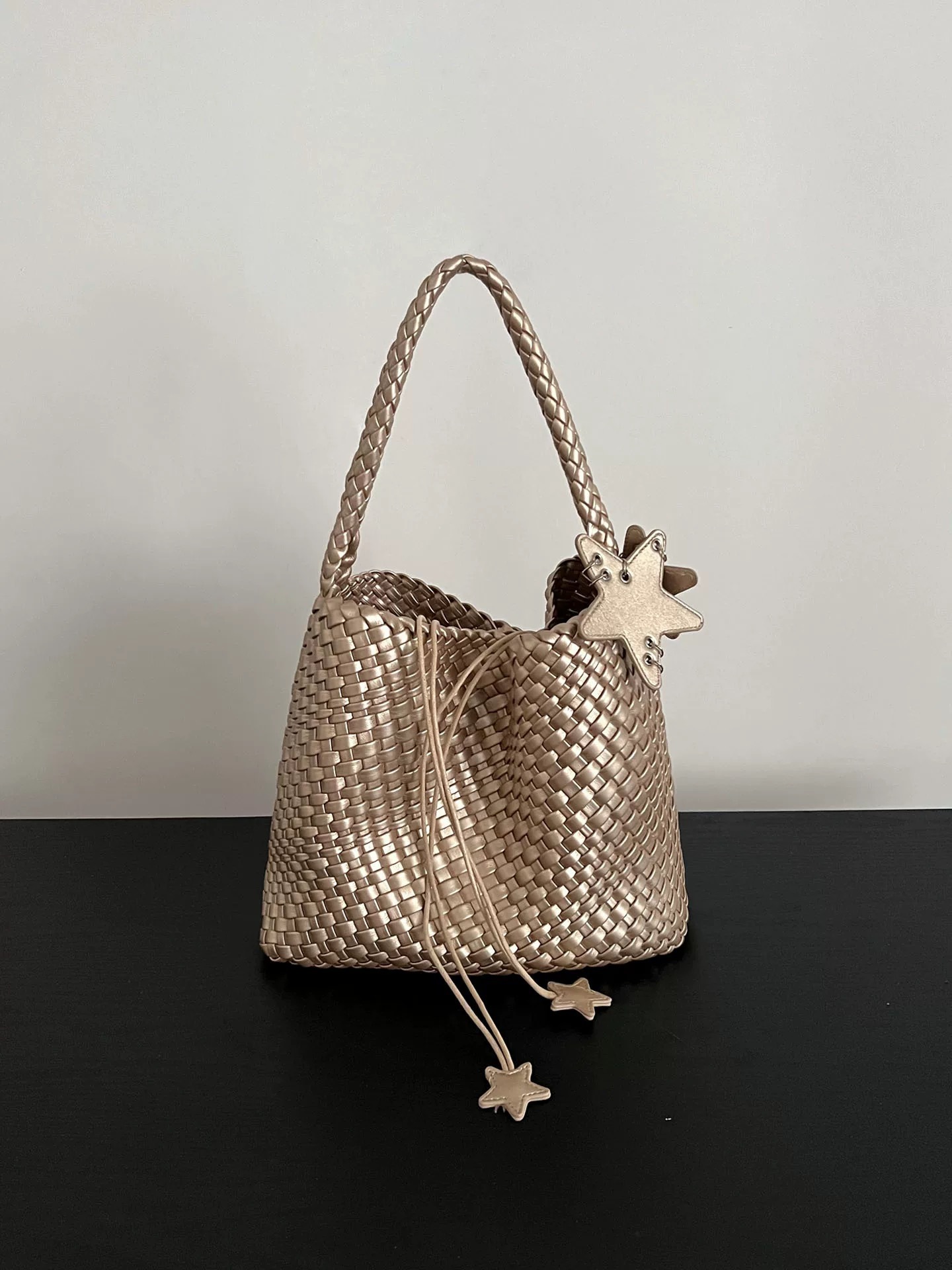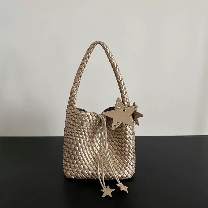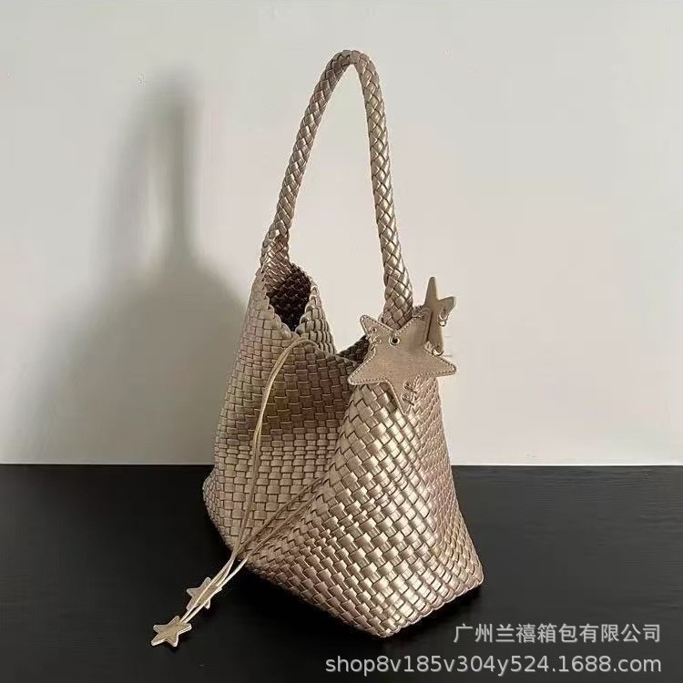 枪枪同款高级感手工编织香槟金色中号水桶包腋下单肩包手提托特包