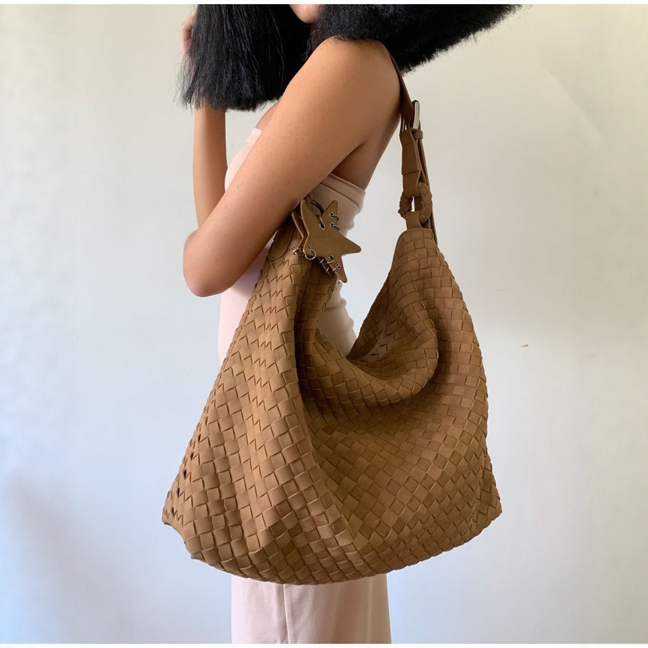 秋冬新款麂皮磨砂绒手工编织托特包女大容量大包百搭单肩斜挎包包