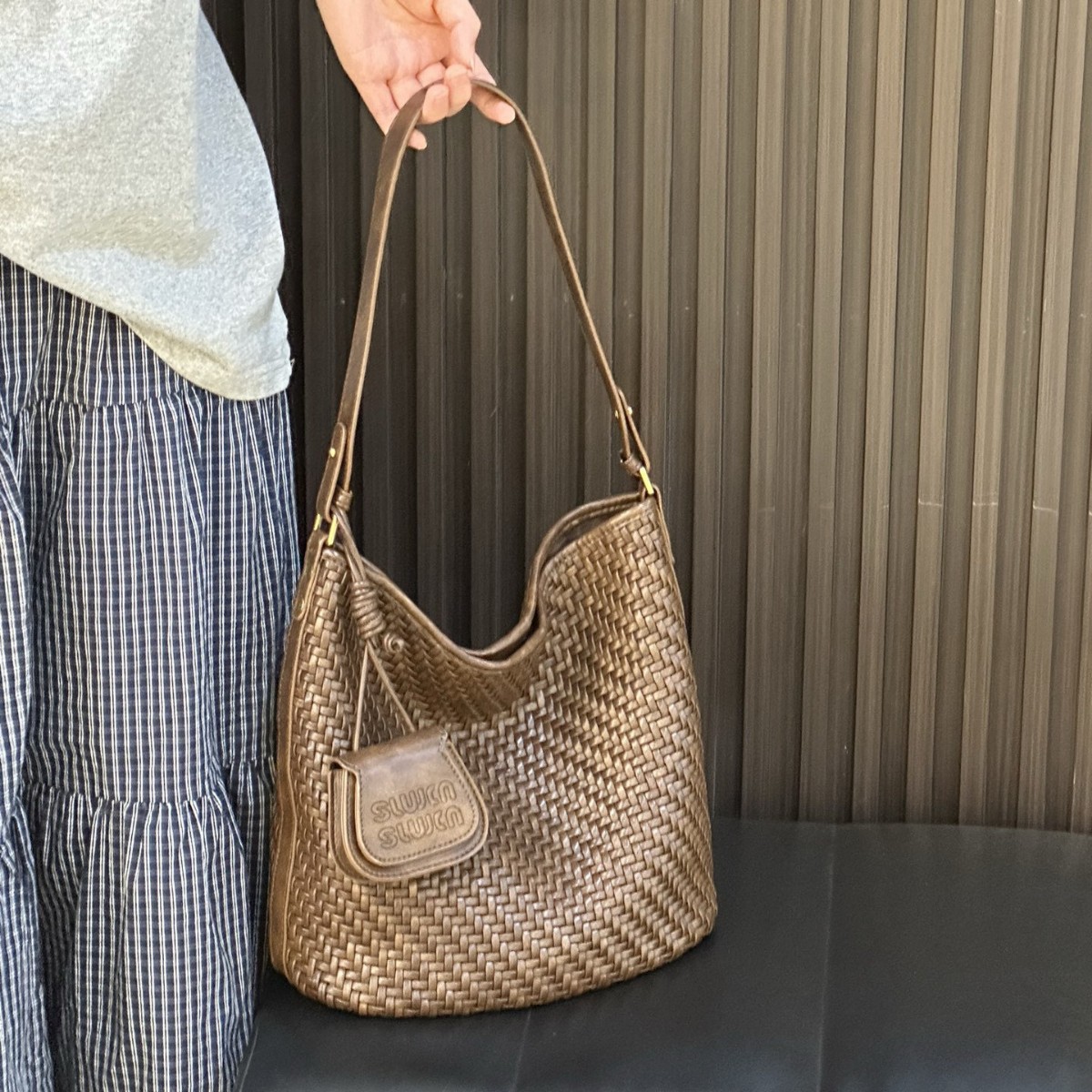 ファッション高級大容量皮編みバッグ2025新作編通勤レトロ小衆片肩脇下トートバッグ