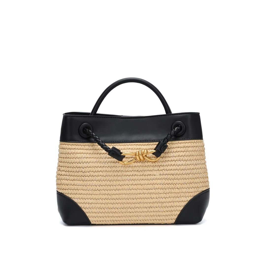 2025越境人気ラフィアメタルリボンハンドバッグレザーシンプルトートバッグハンドショルダーバッグ