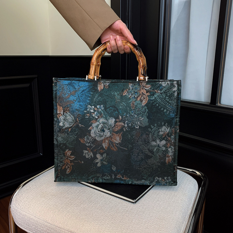 女包包竹节手提包复古国风旗袍包新中式古风汉服女包托特包手拎包