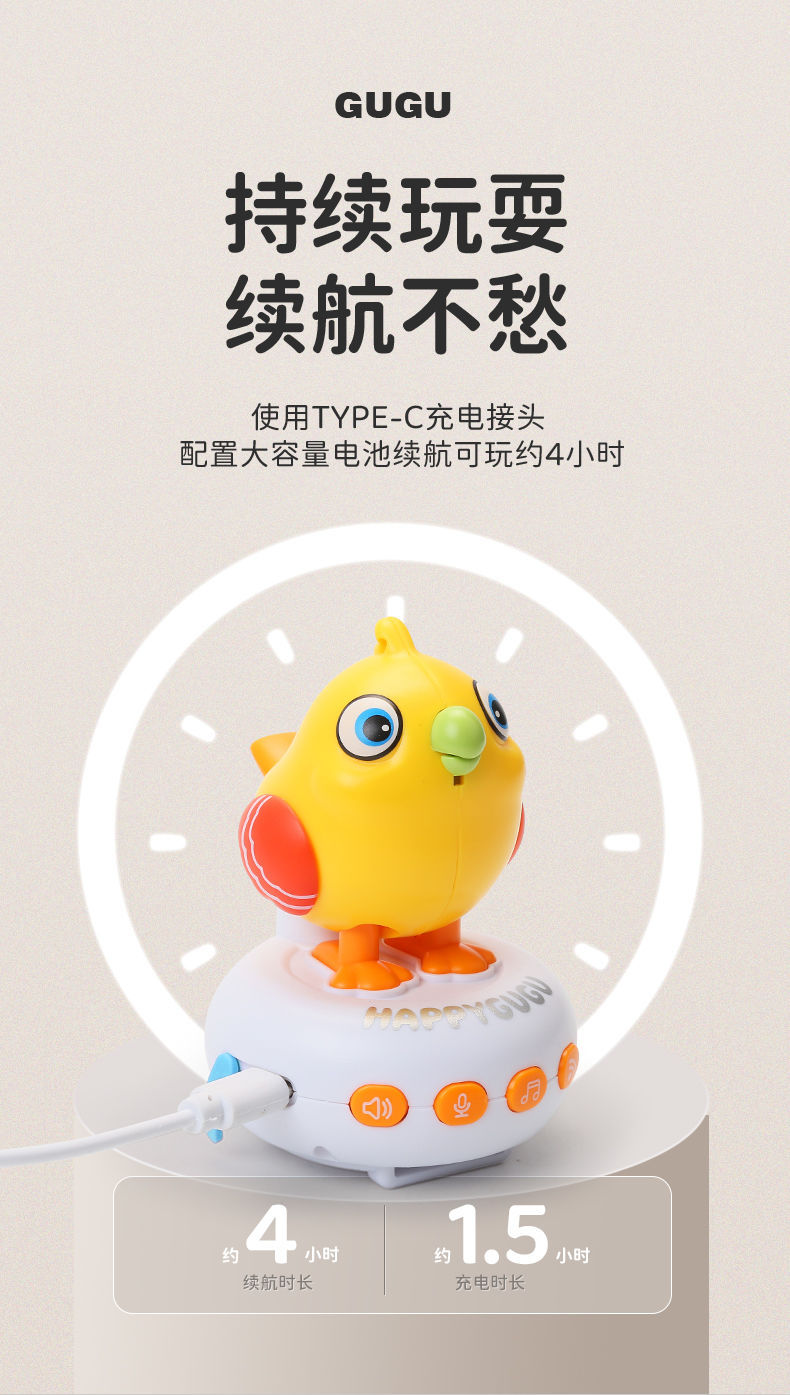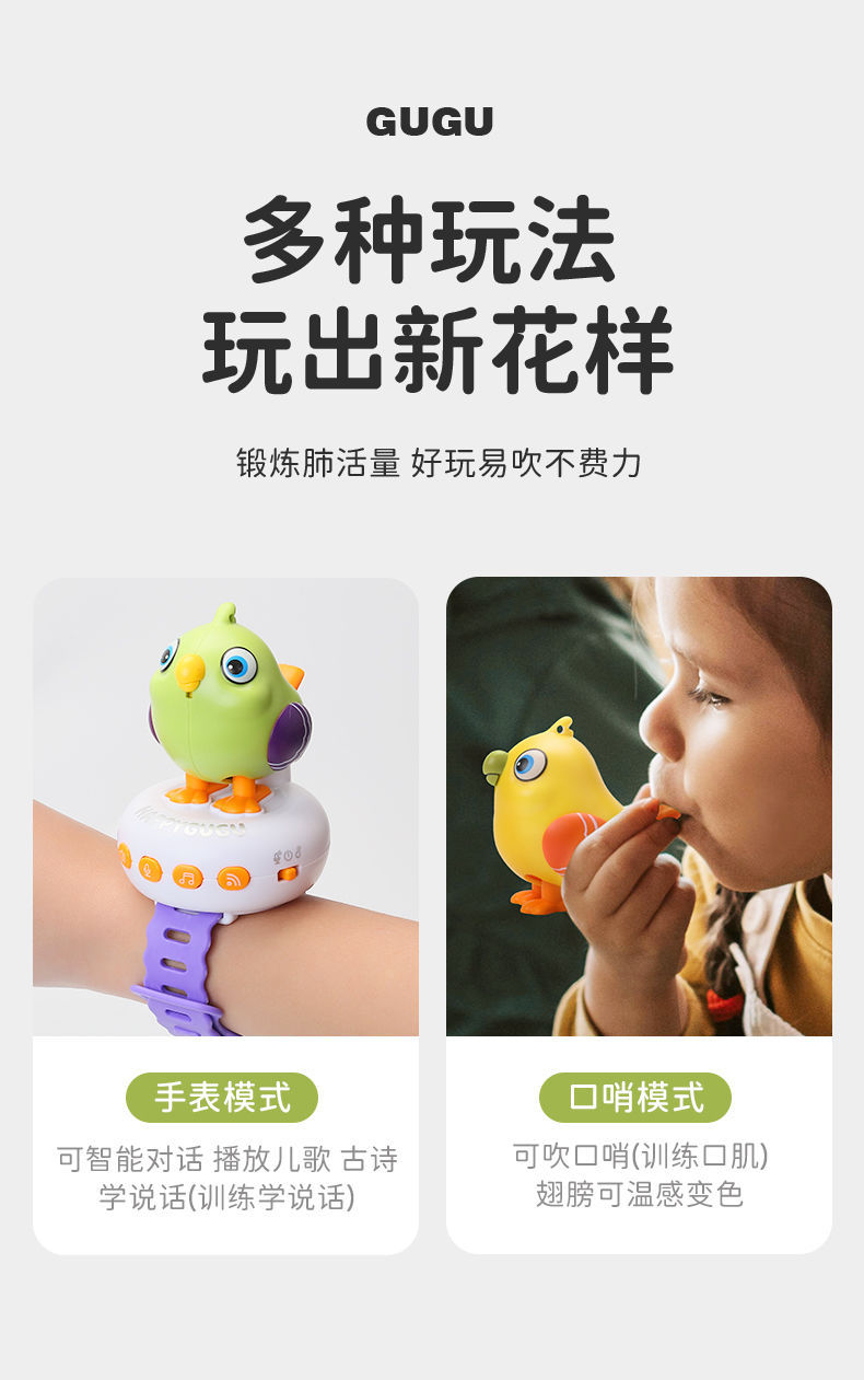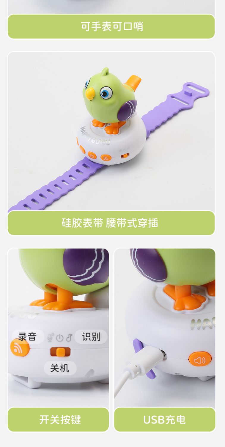新しいガーガー鳥インテリジェント早期教育おもちゃ、話すことを学ぶ、多機能音声対話、充電式子供用腕時計