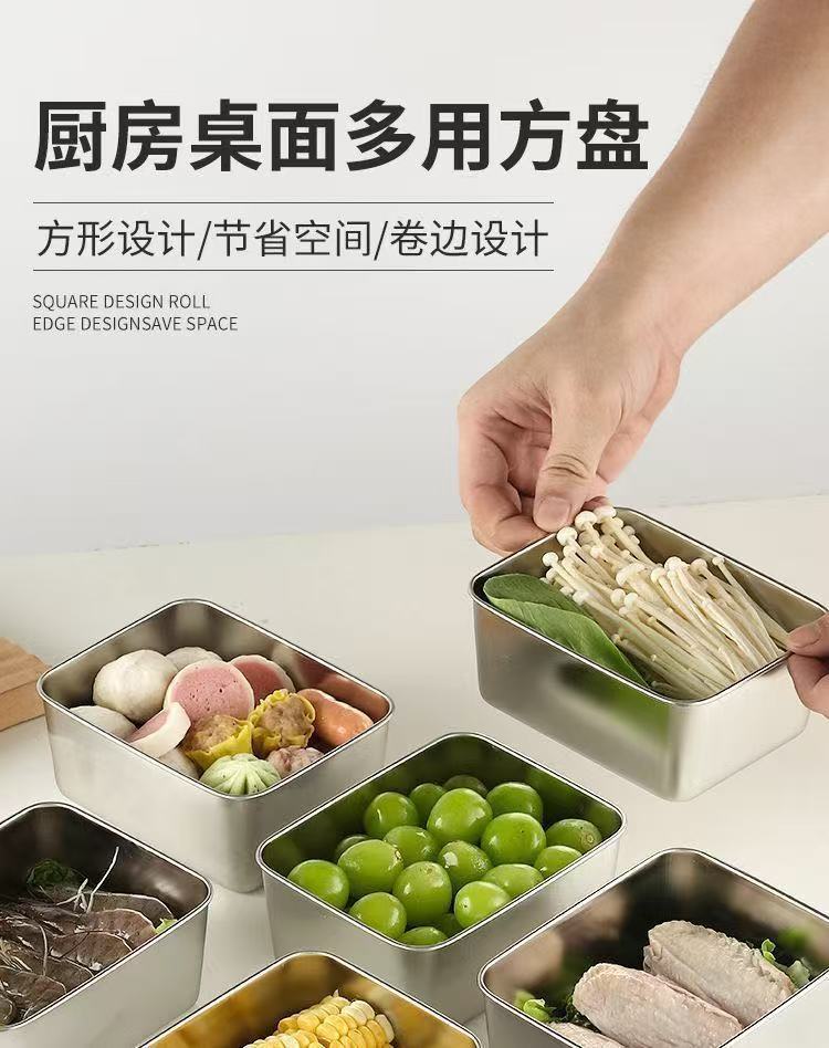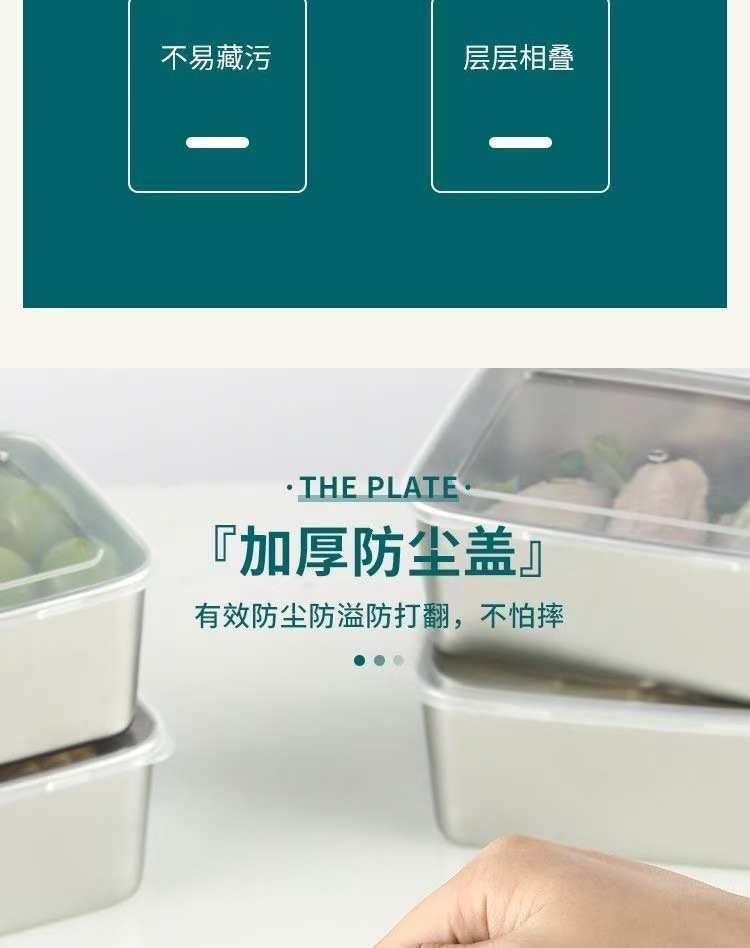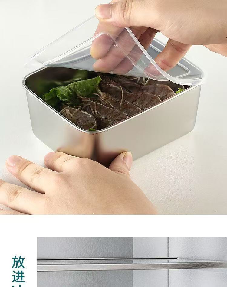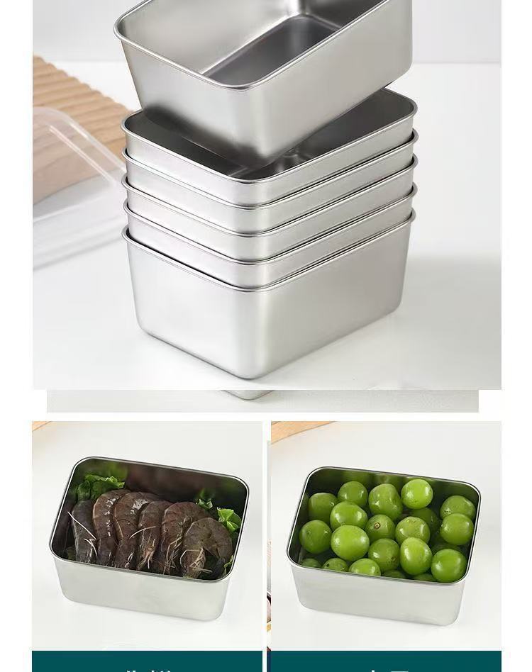 304ステンレス鋼ピクニックボックス食品グレード蓋付き密封正方形鮮度保持ボックス家庭用分割ボックス冷蔵庫収納ボックス