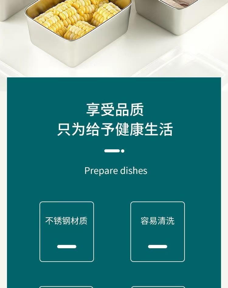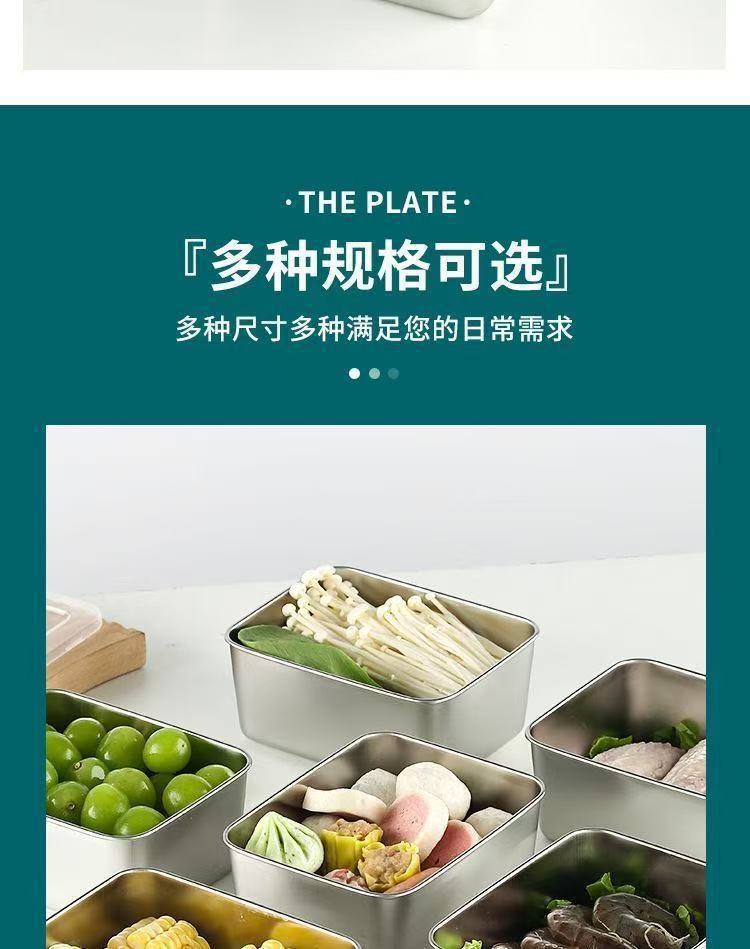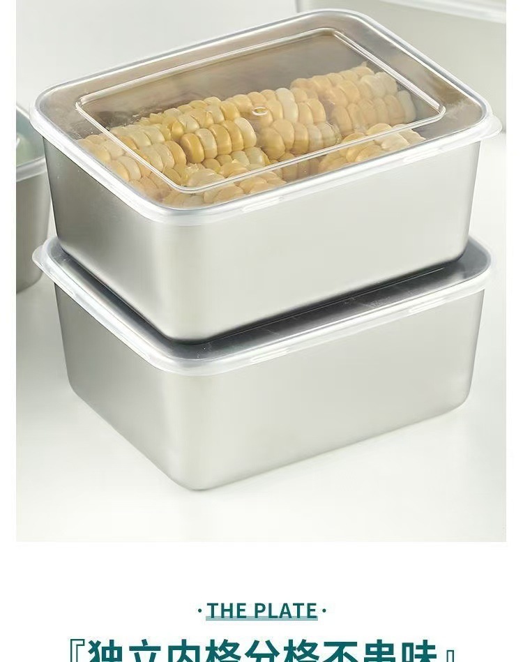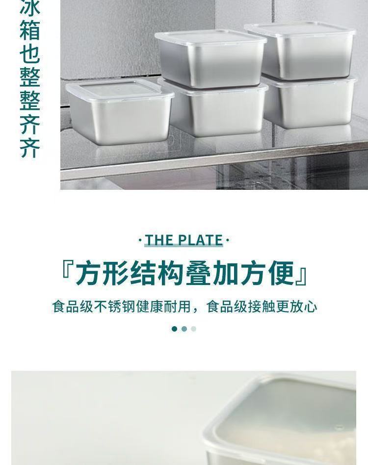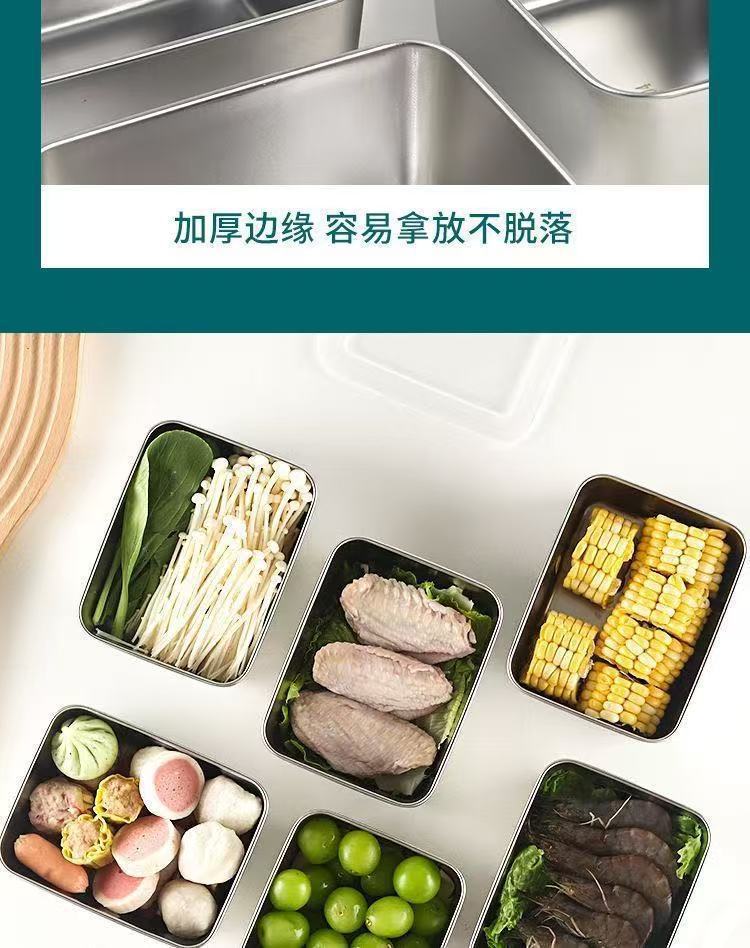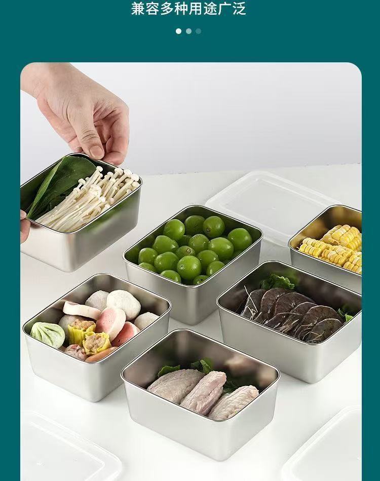 不锈钢盒带盖保鲜碗食材分装盒水果保鲜密封盒冰箱收纳盒密封保鲜