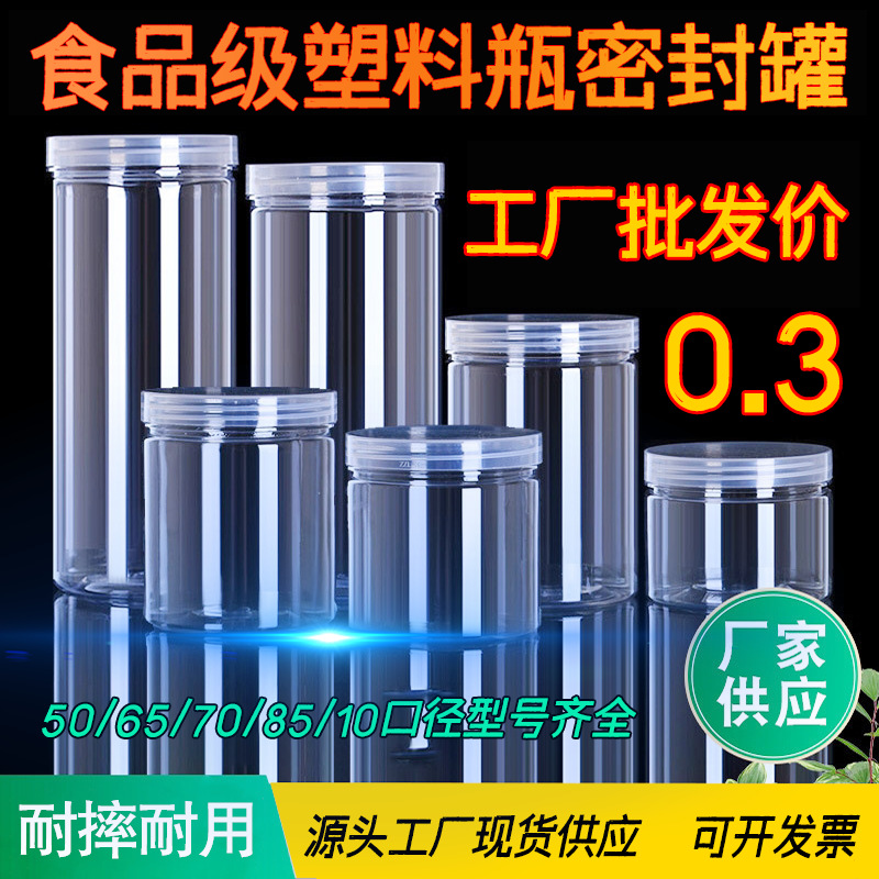 スポット卸売プラスチックボトル透明食品缶密封プラスチック缶空ボトル蓋付き保存缶詰ボトル